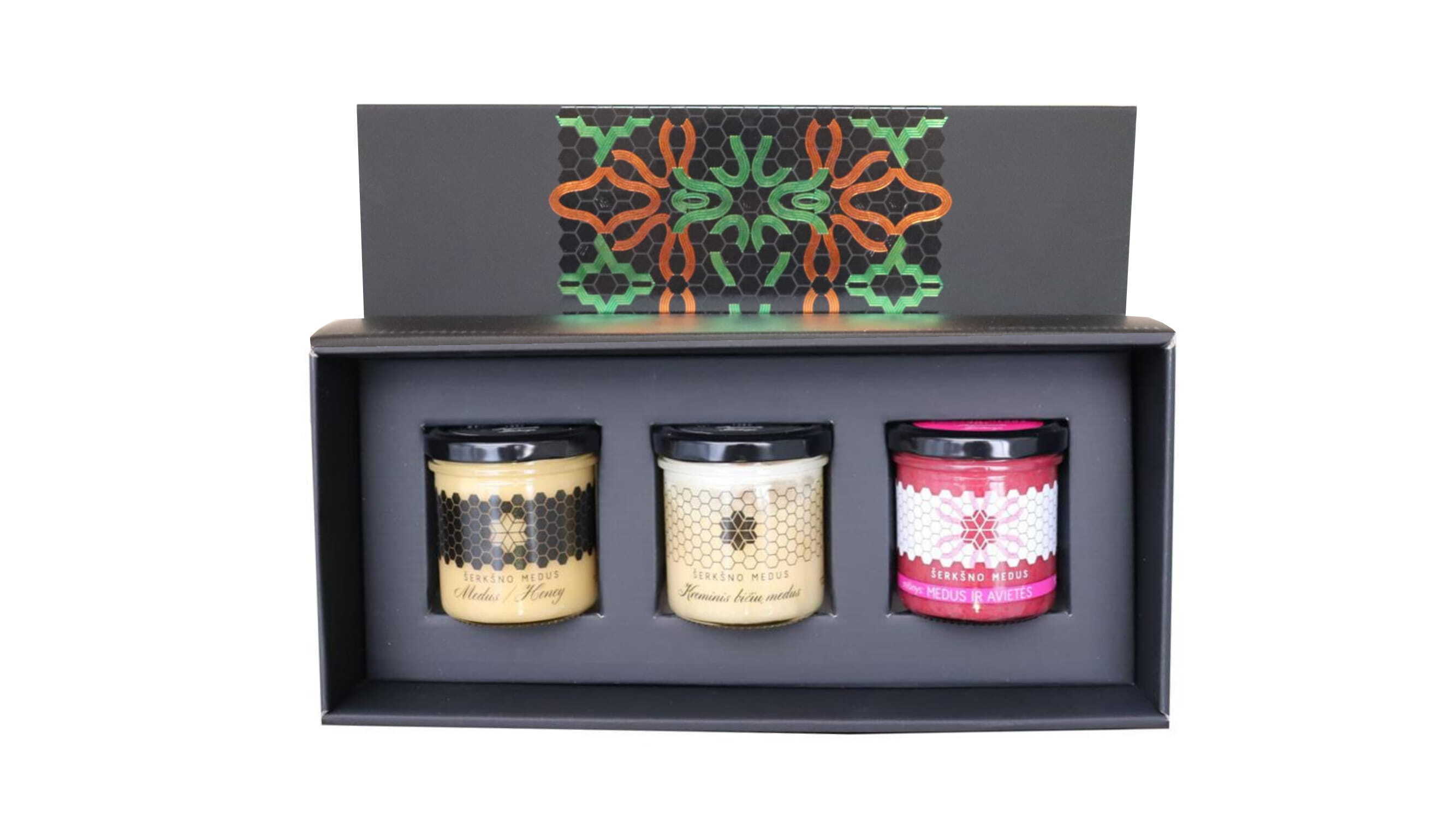 ・ハイグレードなギフトボックスに高級「生」はちみつ3商品をお入れします。