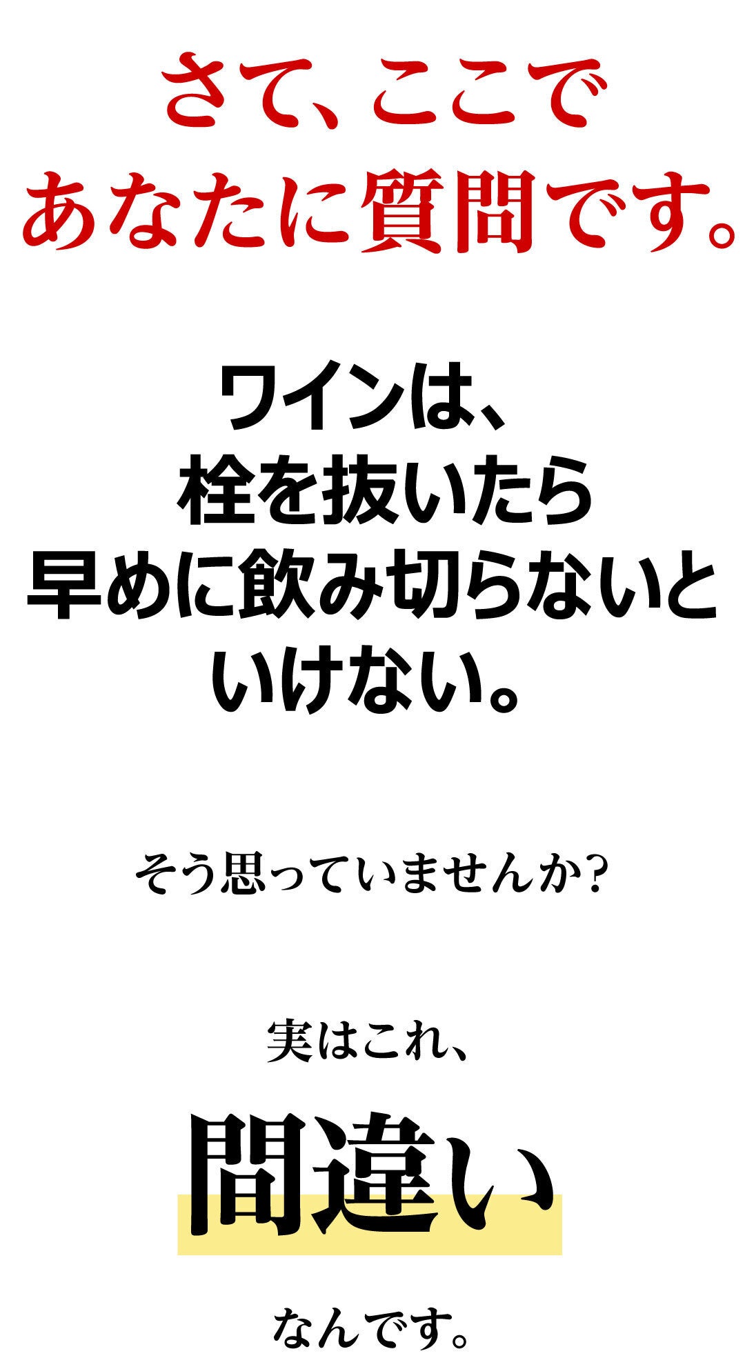 「ワインは、開けたらすぐに飲み切らないといけない」