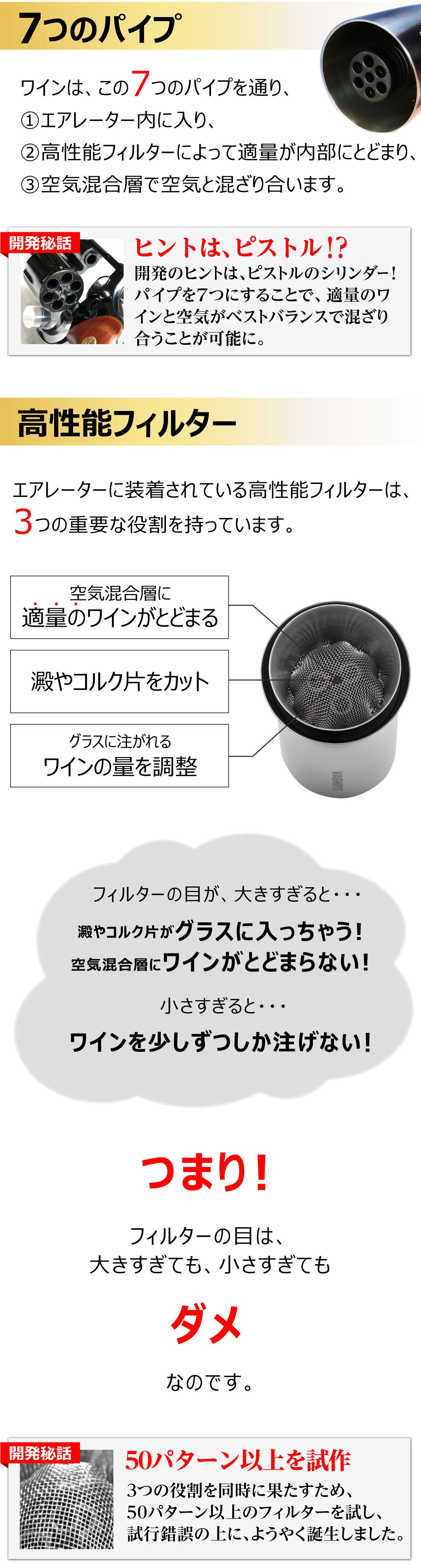 エアレーター内でワインと空気がベストバランで混ざり合うよう、