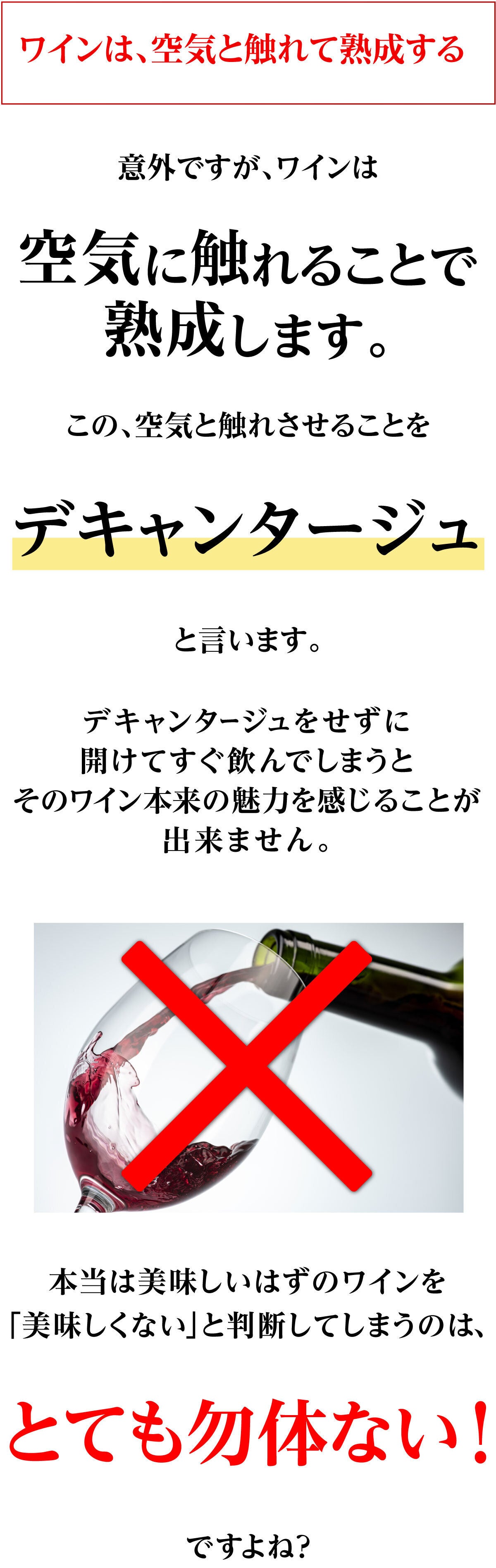 飲み頃ではないワインであれば、香りが開き、そのワイン本来の魅力が引き出されます。