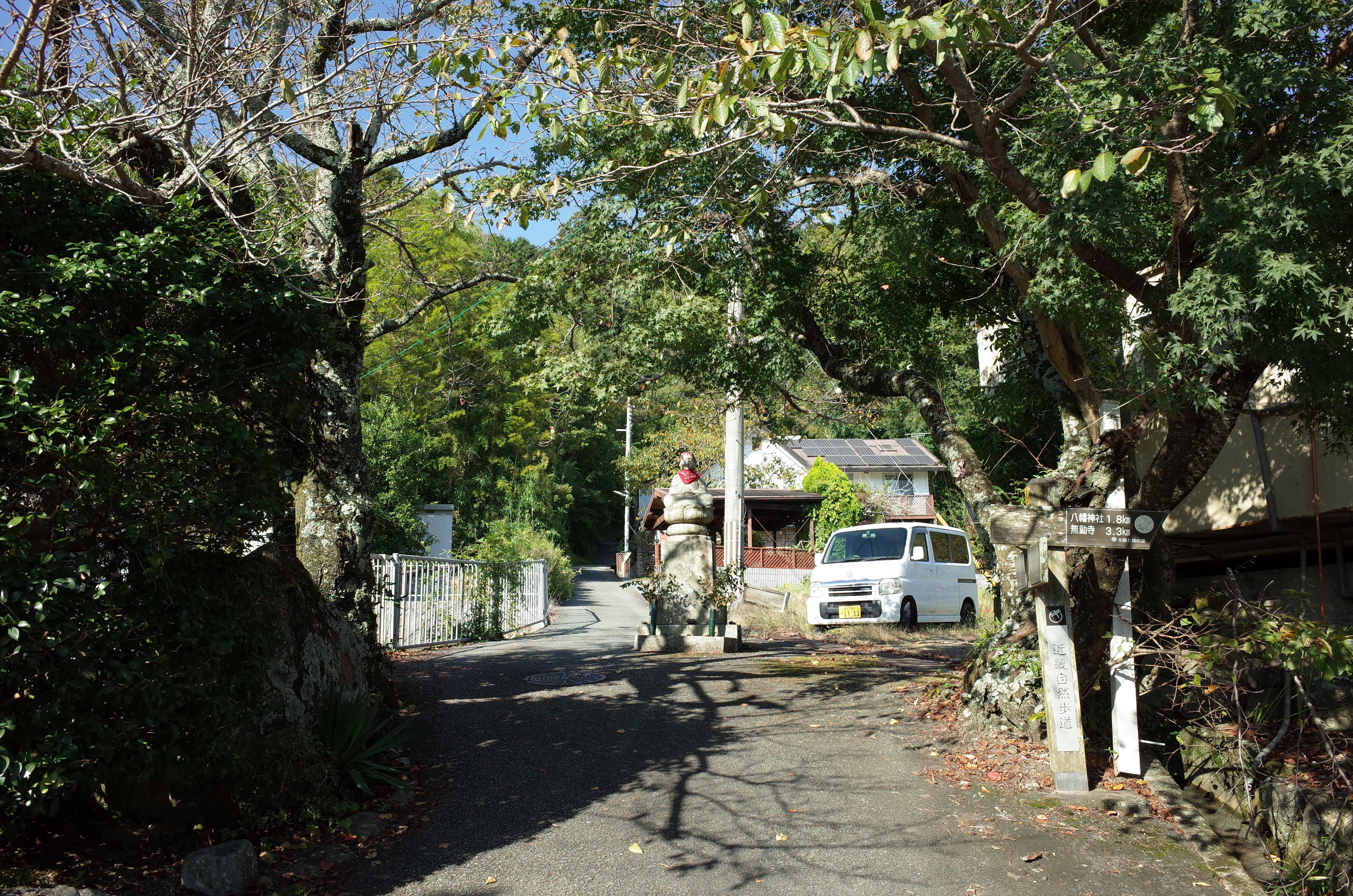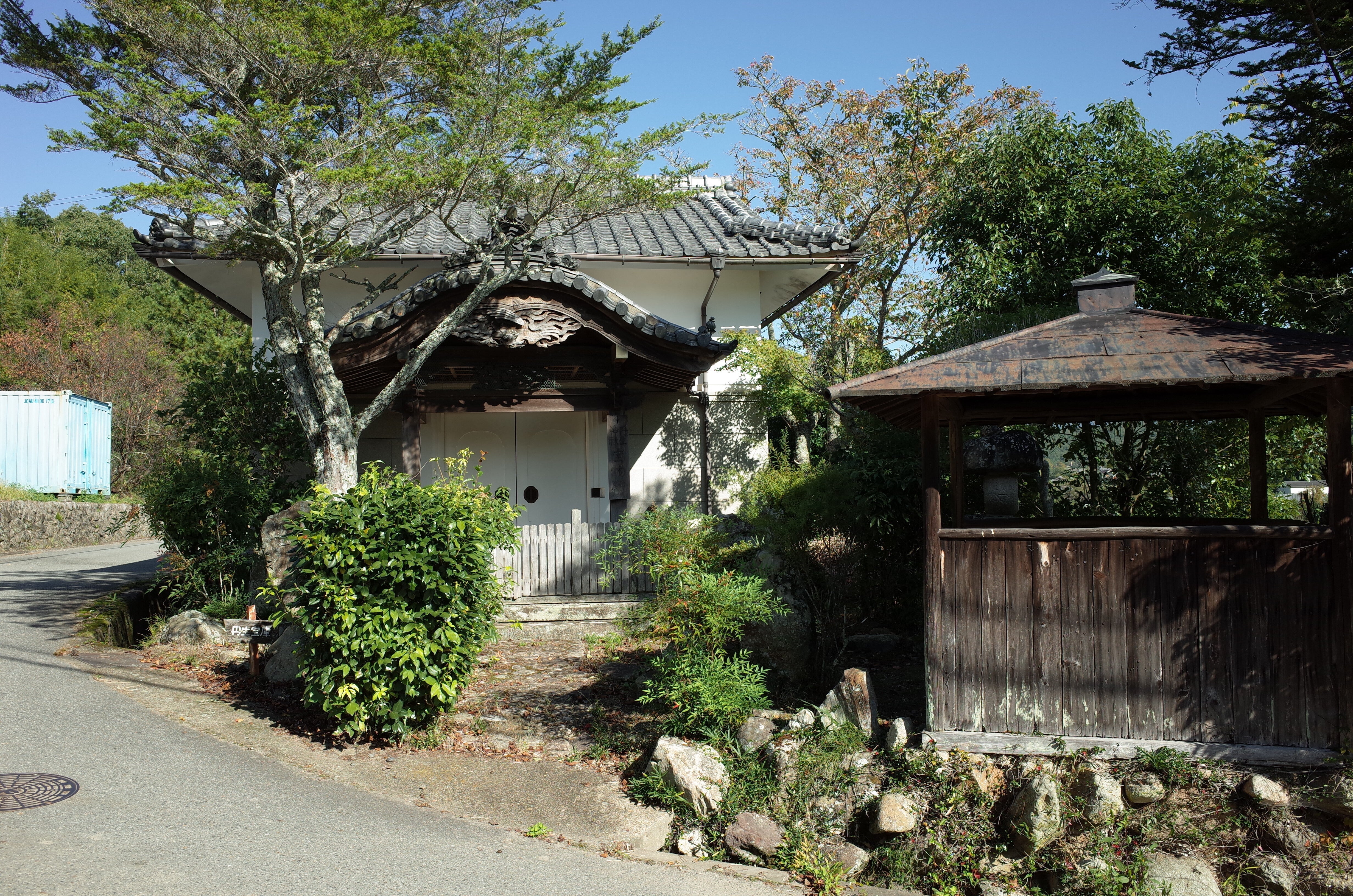 上の写真は、丹生山の麓にある鳥居です。ここから山頂の丹生神社(たんじょうじんじゃ)まで参道が続きます。参道を行くと山に差し掛かるあたりに宝物殿があり、藤原鎌足の木像、明要寺曼陀羅図(平清盛贈、後述)、豊臣秀吉書状、同茶釜などが収められています。通常は年1回のみ公開しますが、ほかの史跡とあわせて内部をご案内するツアーをリターンとして準備しております。