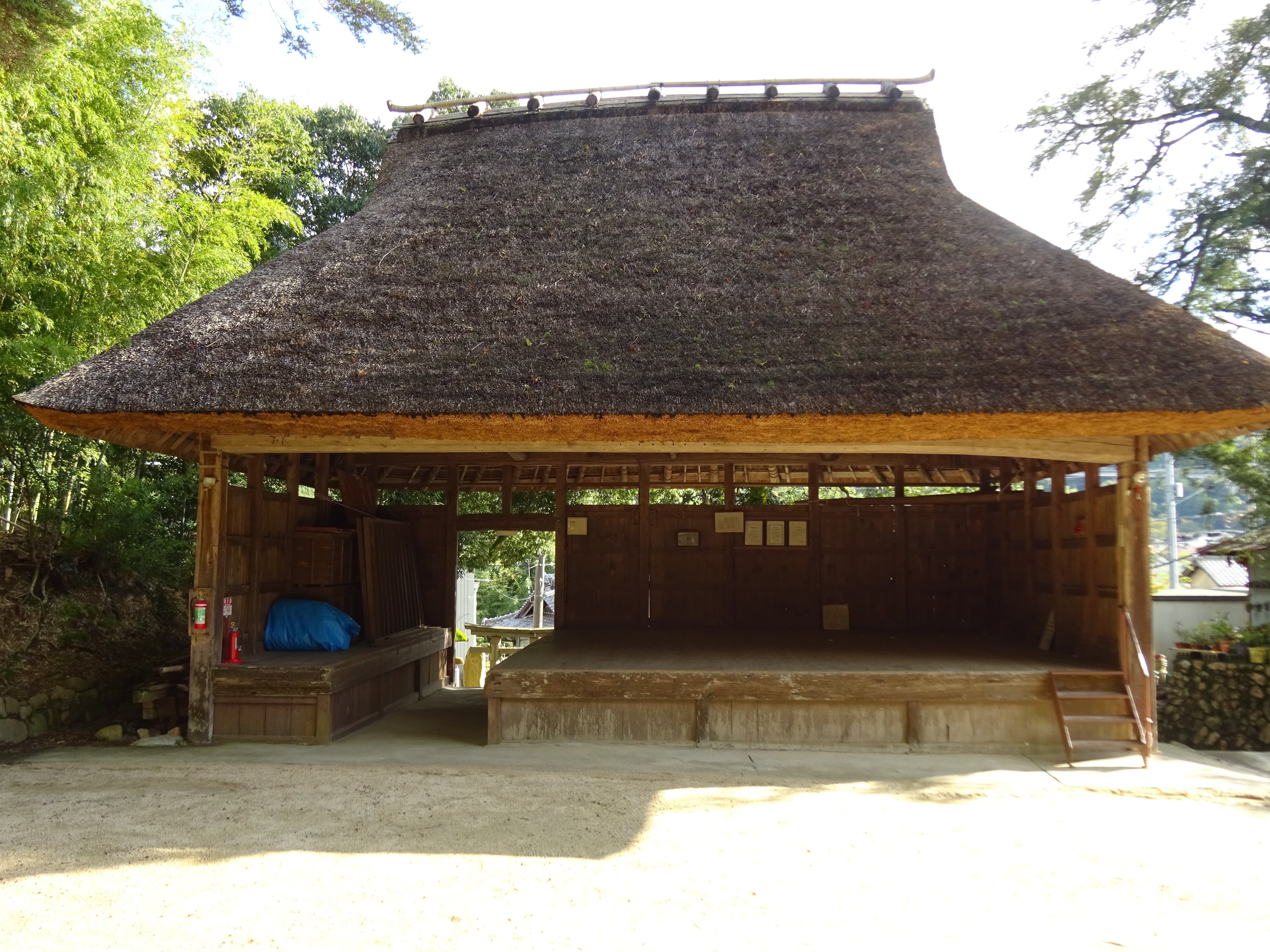 ◆上谷上農村歌舞伎舞台は、三宮から電車で10分の谷上駅から徒歩15分。天満神社境内にあり、普段は舞台の中央を割り参道に使用し、「床几(しょうぎ)回し」という舞台変換装置があるのが特徴です。1863(文久3)年の建立で、兵庫県の重要民俗文化財に指定されています。