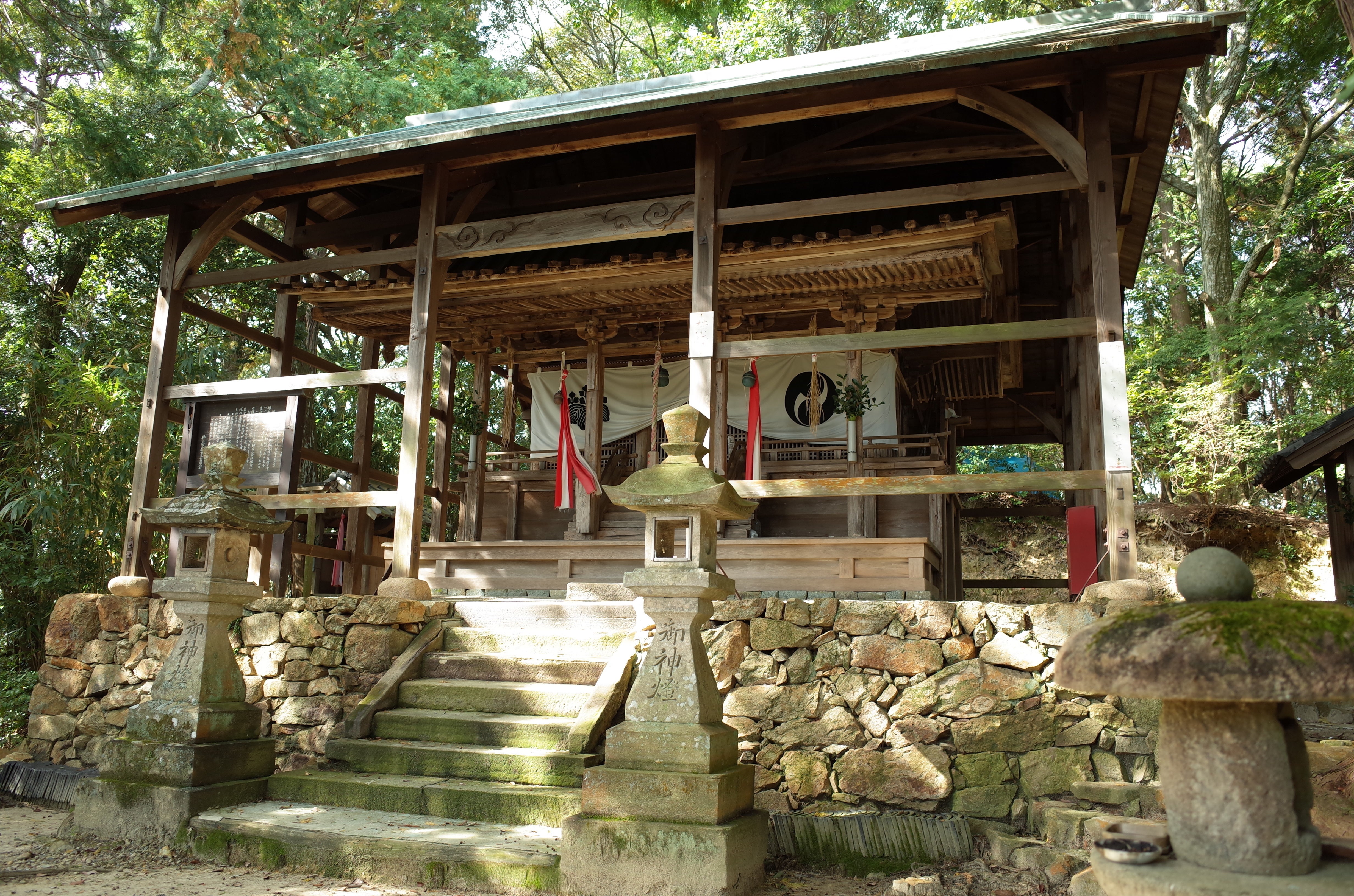 境内の西側、一段高くなったところに鎮座するのが「若王子神社」です。室町時代前期の建立とされ、流麗な屋根の曲線美が特徴です。元々は無動寺の鎮守社でしたが、神仏分離令により無動寺から分離されたとのこと。こちらも国の重要文化財に指定されています。