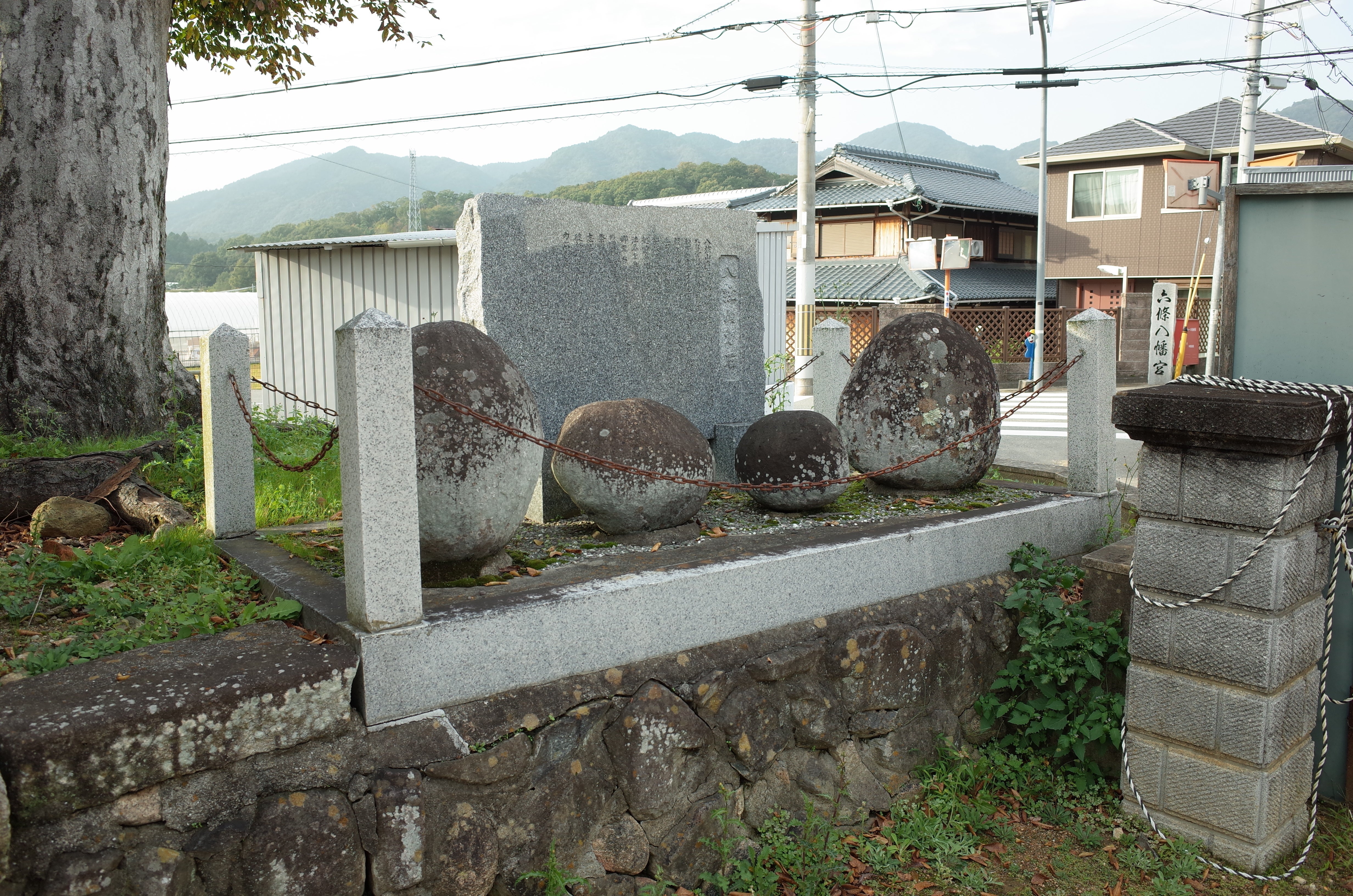 丹生山田の里には、江戸時代に活躍した力士の記念碑が残っています。今回は中村の大歳神社境内にある「八弦山直吉」の力石を紹介します。
