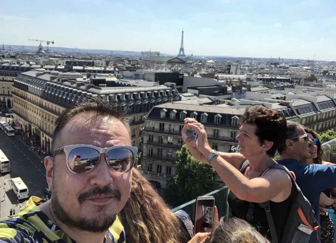 こんばんは レオンです。「君と僕とパリ」の表紙になっている僕の作品「amore paris」は、パリ市内の老舗デパート ギャラリーラファイエットの屋上(写真)から見た景色を描いたものです。本に出てくる作品の中でもっとも時間をかけて描いた作品です。ストーリーの最後にも出てくる重要な場所。作品では夕暮を描いていますが昼間はこんな感じの場所ですよ。最終ページに出てくるこの作品。ぜひ絵本で、読んで、見ていただきたいです。