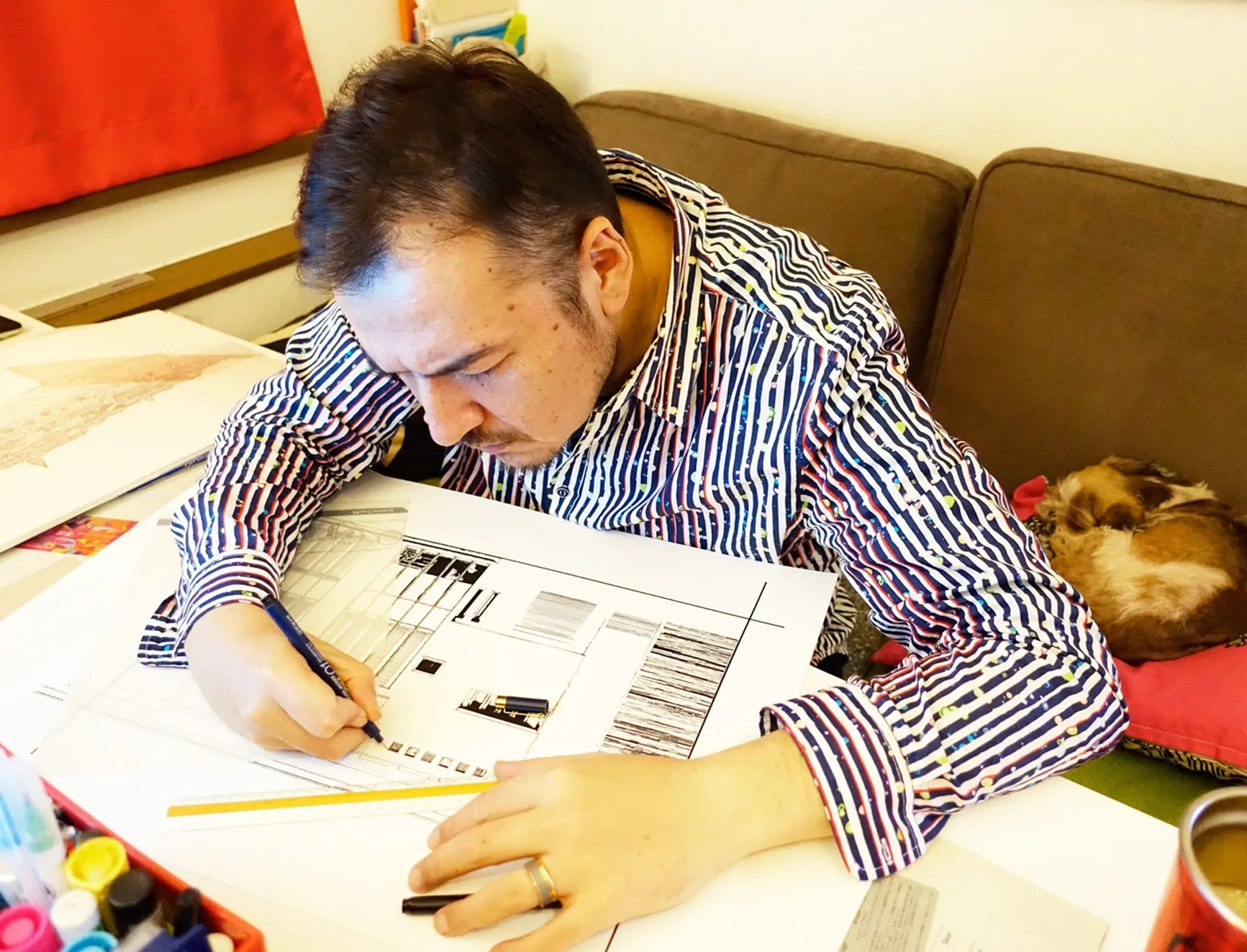 本作品の絵もそうですが、僕の絵に出てくる建物などは、実物をできるだけ忠実に描くようにしています。それは、建物を設計された方の思いや、時代、またその街を訪れた方々の思い出を思い出してもらえたらという気持ちをこめての事です。本作品「君と僕とパリ」に使用いたしました全作品も同様に描いています。細かいディテールなどにも注目していただけたらと思います。