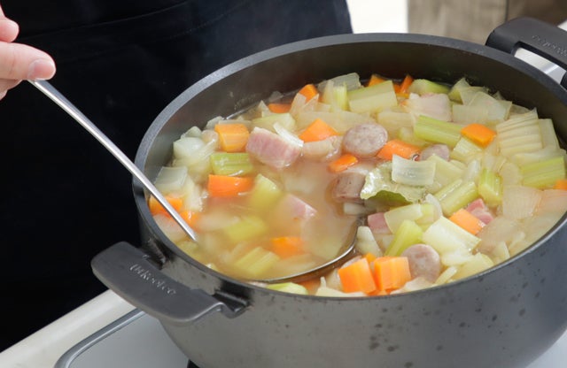 よく味が染み込んだ煮込み料理はおいしいですよね!口に入れたときの「ウマーっ!」は、幸せの瞬間です。「煮物は冷ますと味が染みる」と言われるように、ポトフやおでんなどを作るとき、具材に味を染み込ませるためにいったん火を止めて休ませたりします。そんなときは「ゆっくりと冷ます」と味がよく染み込んで美味しいようです。少量よりもたくさん作った方が美味しいと言われたり、煮込み用には厚手の鍋が良いと言われるのは、いずれも「ゆっくりと冷めるから」と言えそうです。