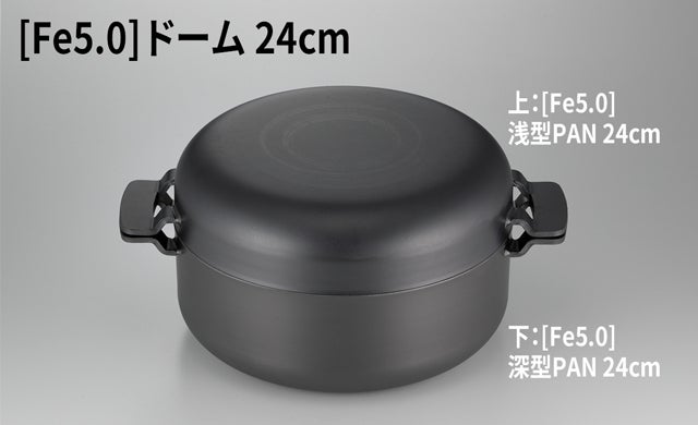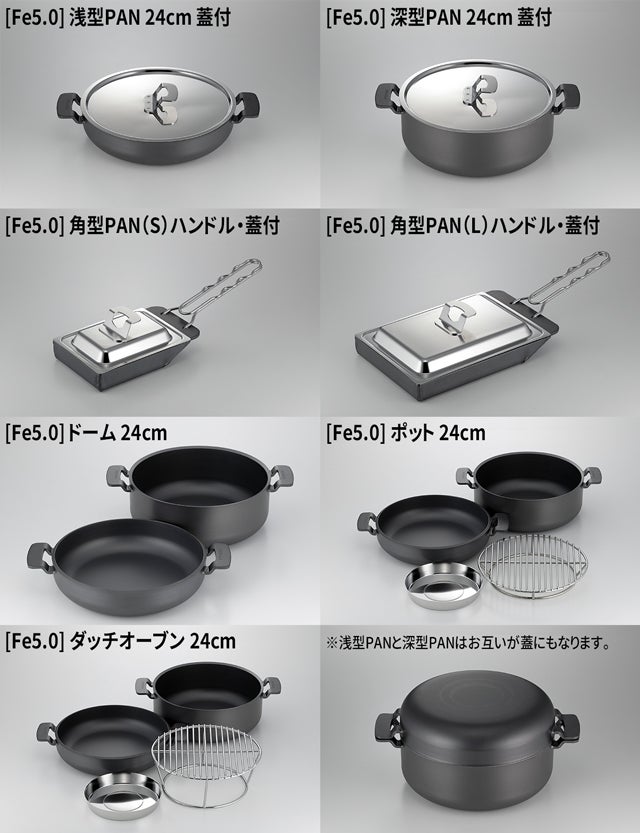 Fe5.0はオーブンにも対応します(注意:蓋、角型PANの取り外し式ハンドルは対応しません。)