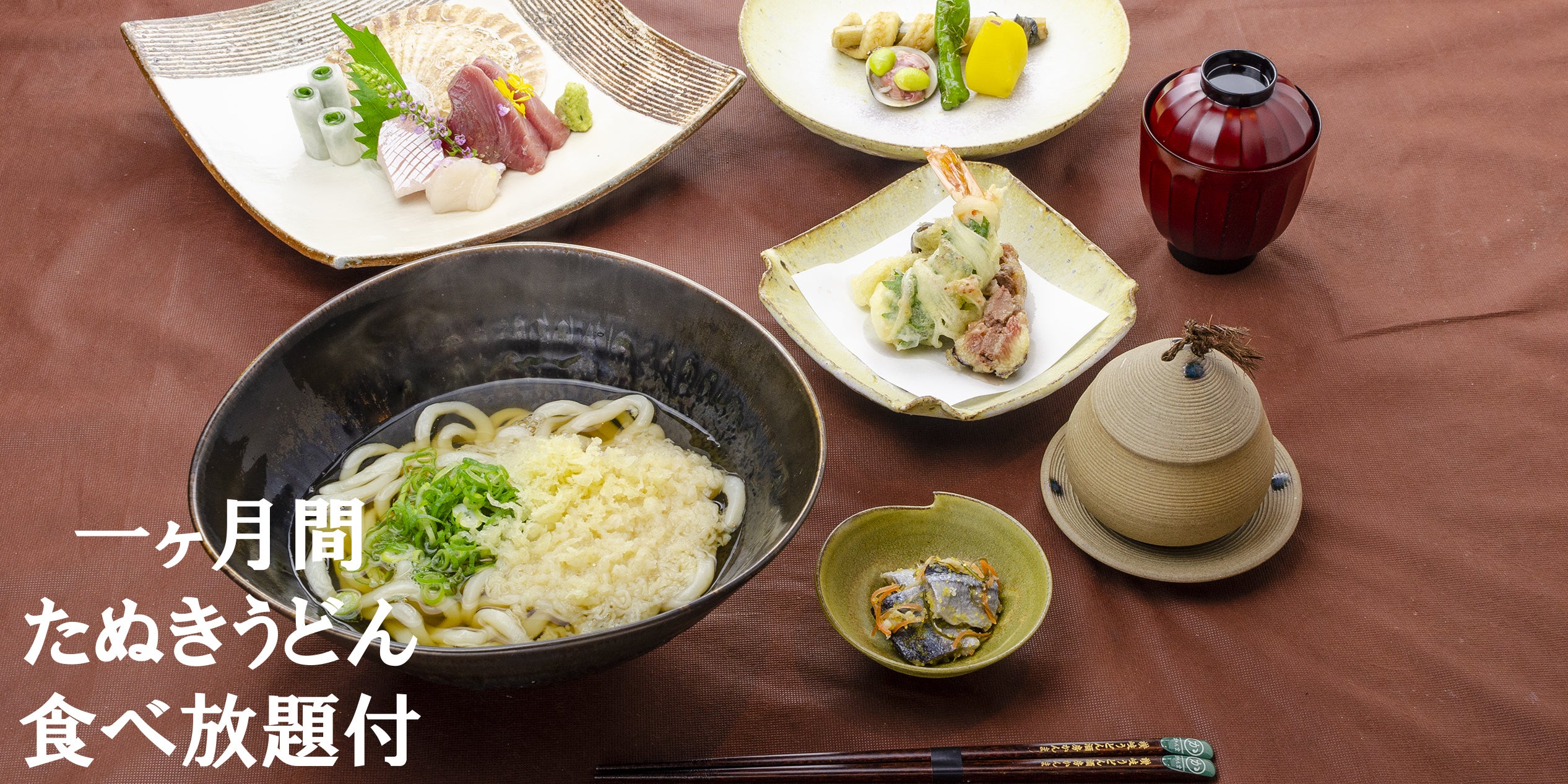 5000円×2名様コース+ディナーうどん一ヶ月食べ放題/18000円