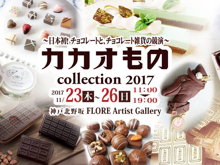 また、2017年11月、神戸市北野のギャラリーにて、500種類以上のチョコレートデザイン雑貨や、食べられるチョコレートなど、チョコレートに関する様々なものが集う「カカオものcollection」という展示会を主催し、イベントではチョコレートをより深く楽しむための10種以上のセミナー・ワークショップもあり、4日間で入場者数は2000名越えました。