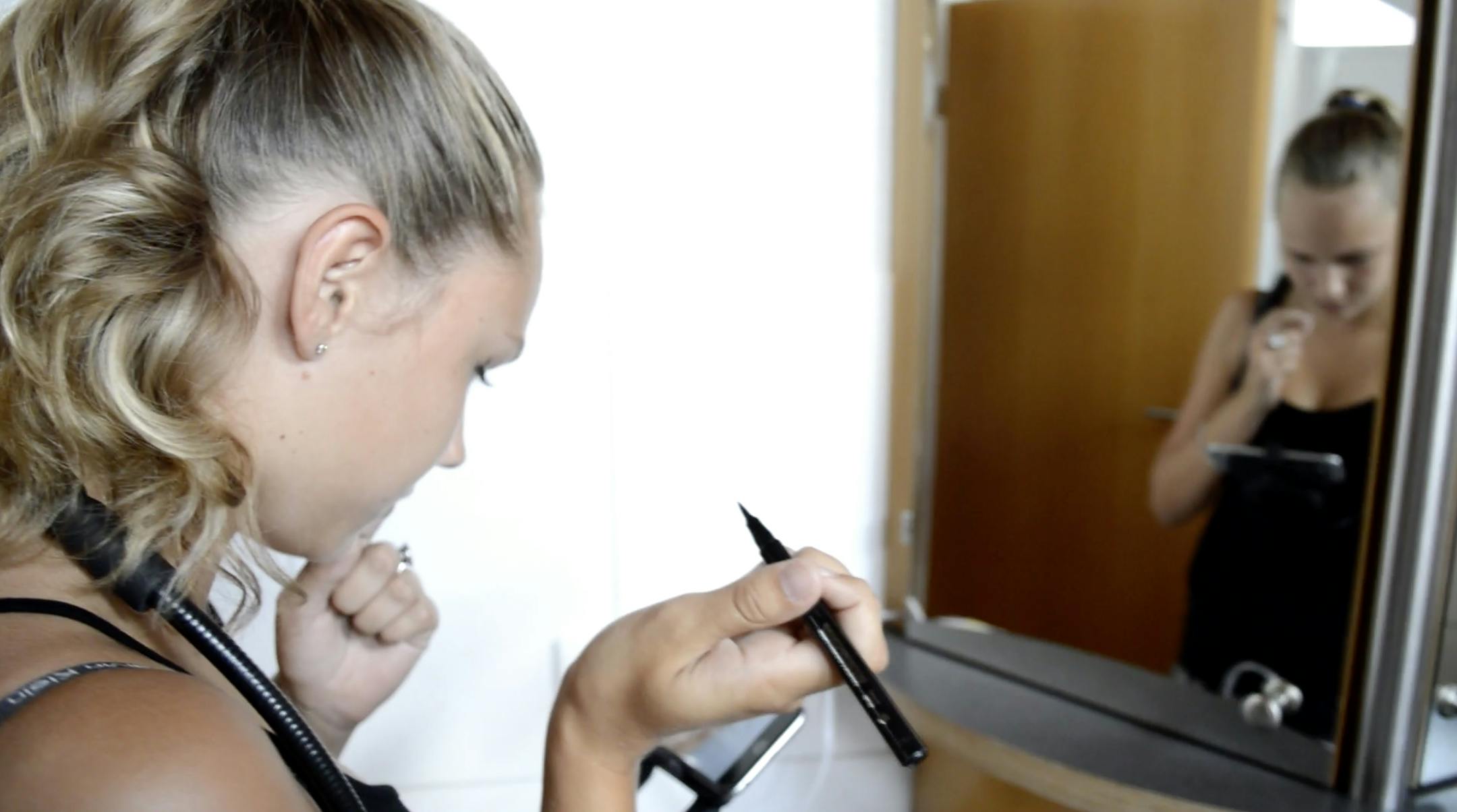 首にかけてスマホを好きな位置に固定できるので、スマホでメイク動画を見ながらお化粧もできます。