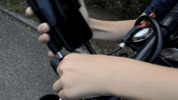 自転車アームにFLEXD-SMARTを巻きつけて固定すれば、スマホを自転車ナビにできます。
