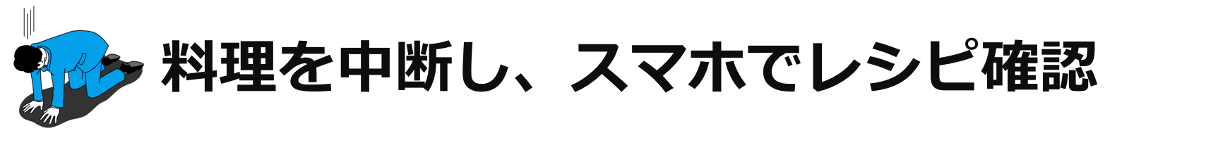スマホでレシピを確認するときに料理を中断して、手を空けないといけない。
