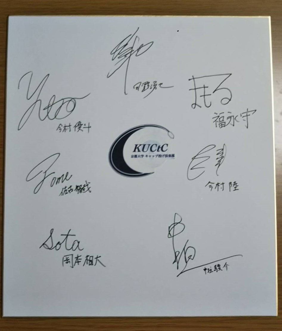 9,000円:1. 京都大学キャップ投げ倶楽部のメンバー(7名程度)のサイン色紙
