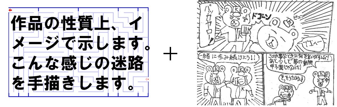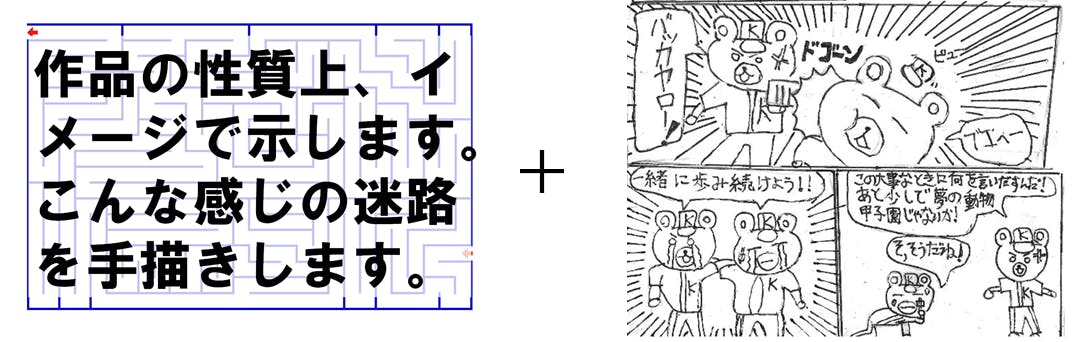 30,000円:京都大学キャップ投げ倶楽部のメンバーが作成した「手作り迷路(紙に描いたもの)」3枚(=3種類)をお渡しします。原画ではなく、写しになります。送料は支援者にご負担をお願い致します。着払いで送付します。