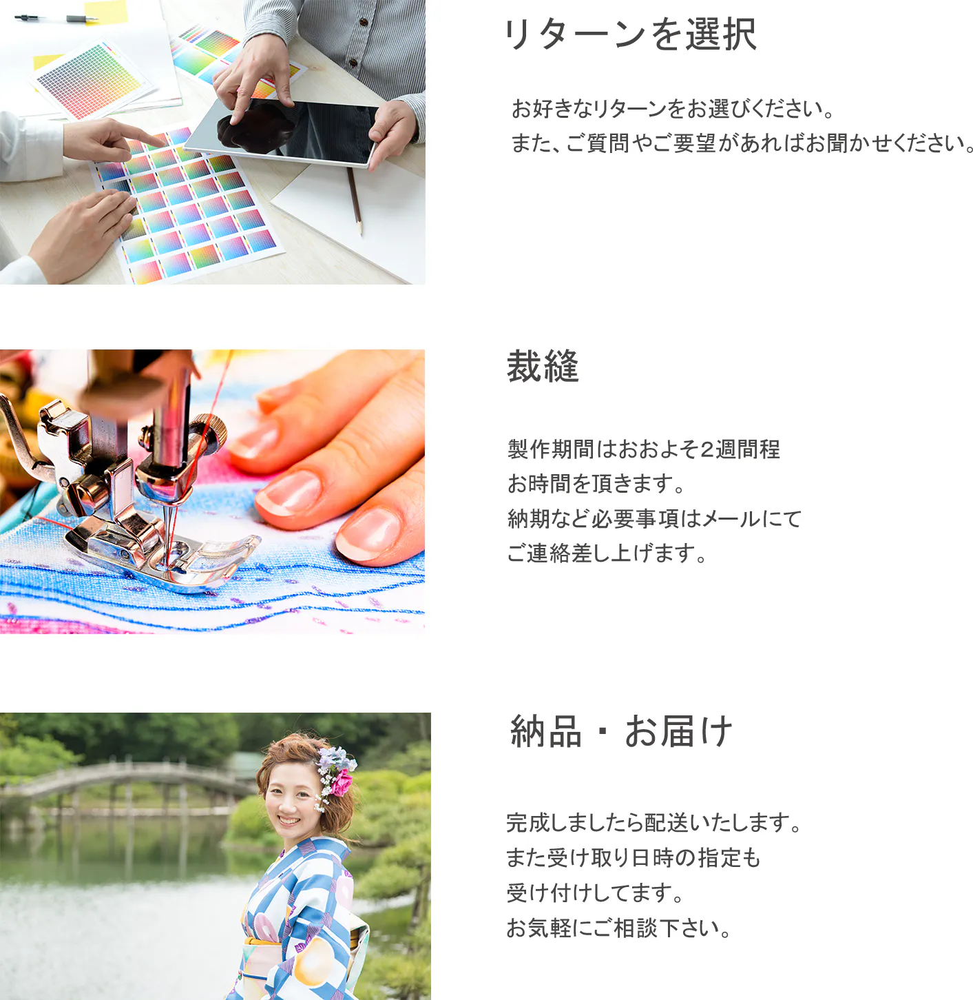 サイズもすべてお客様に合わせてご用意。