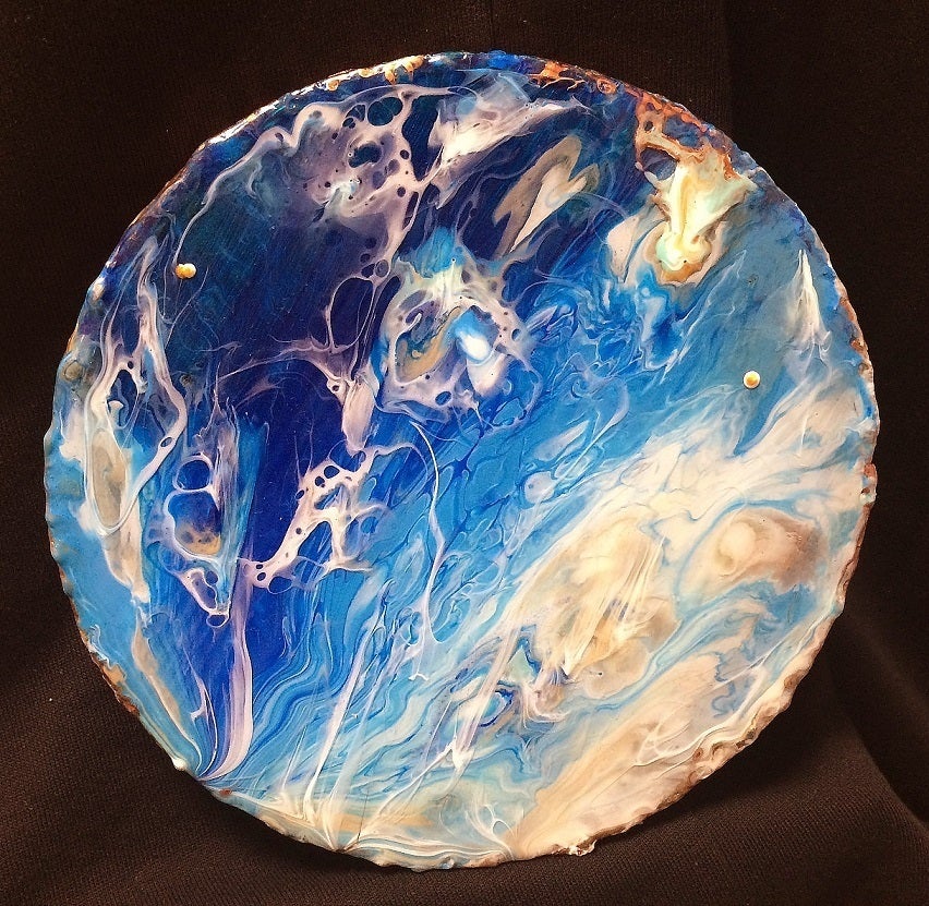 ¥30,000-リターン作品は稀少な大根田真の木円アクリル抽象画(直径20cm)です☆
