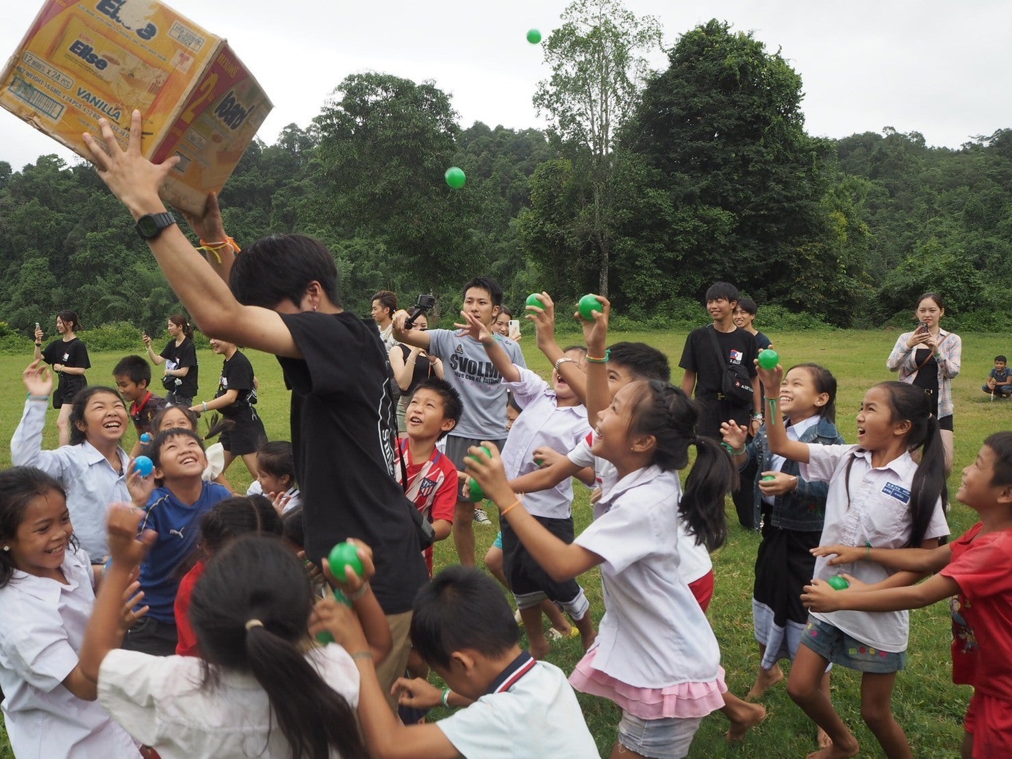 →運動会プロジェクトの玉入れをしている様子。