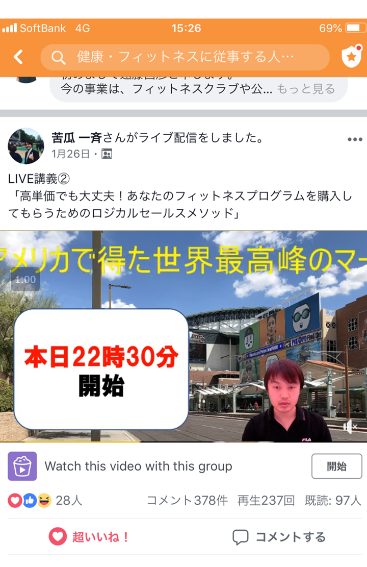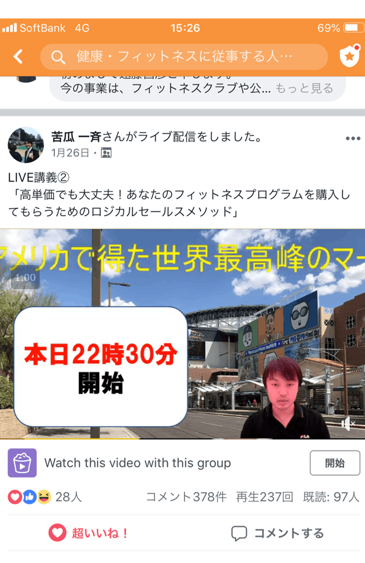 ▲Facebookでライブ配信をして、コメントが400件近く入った際の様子