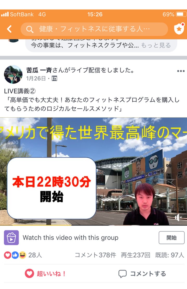 ▲Facebookでライブ配信をして、コメントが400件近く入った際の様子