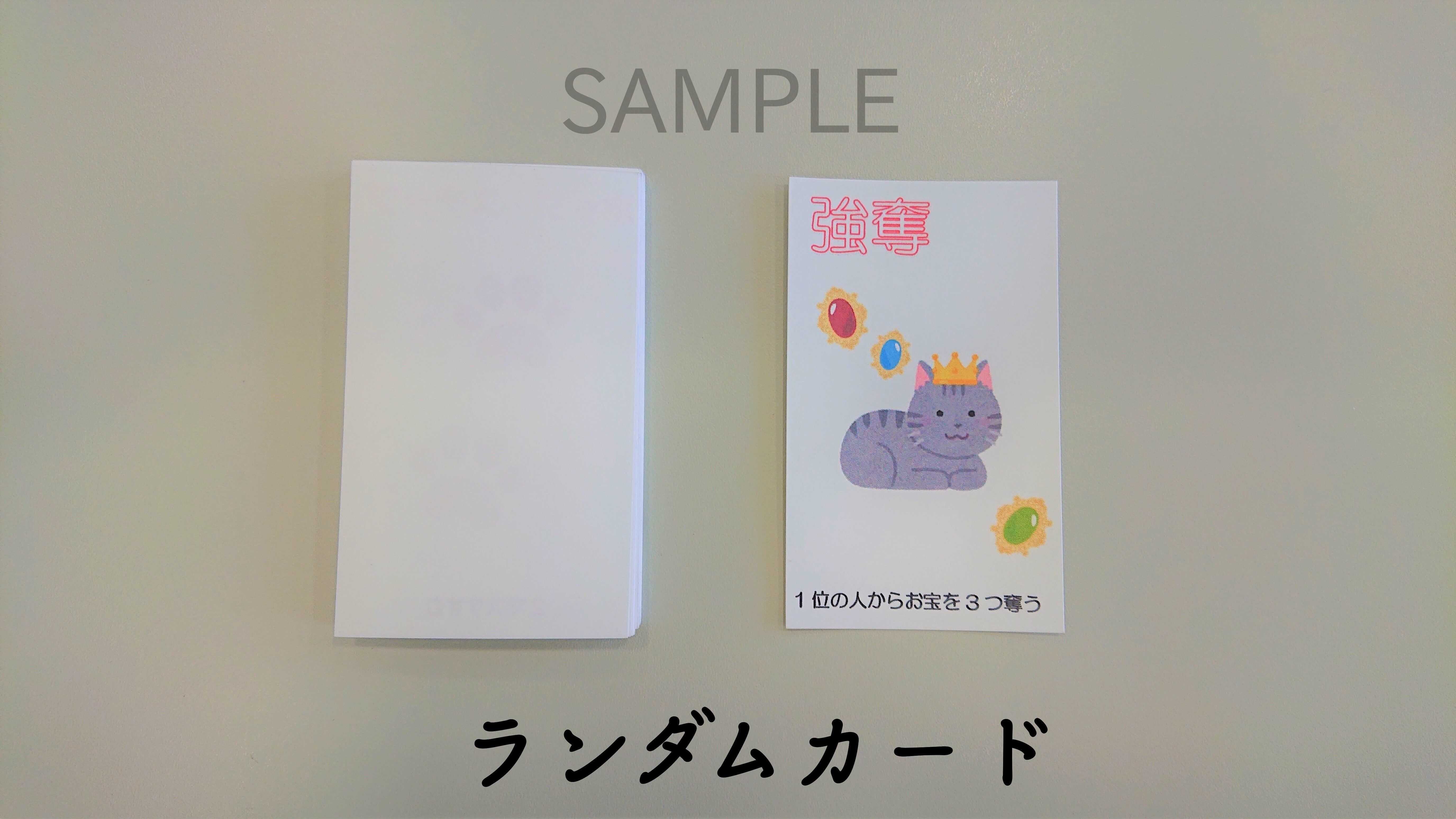 1.ランダムカードをシャッフルして、裏返しにしておきます。これがランダムマスに止まった時に引くランダムカードの山になります。