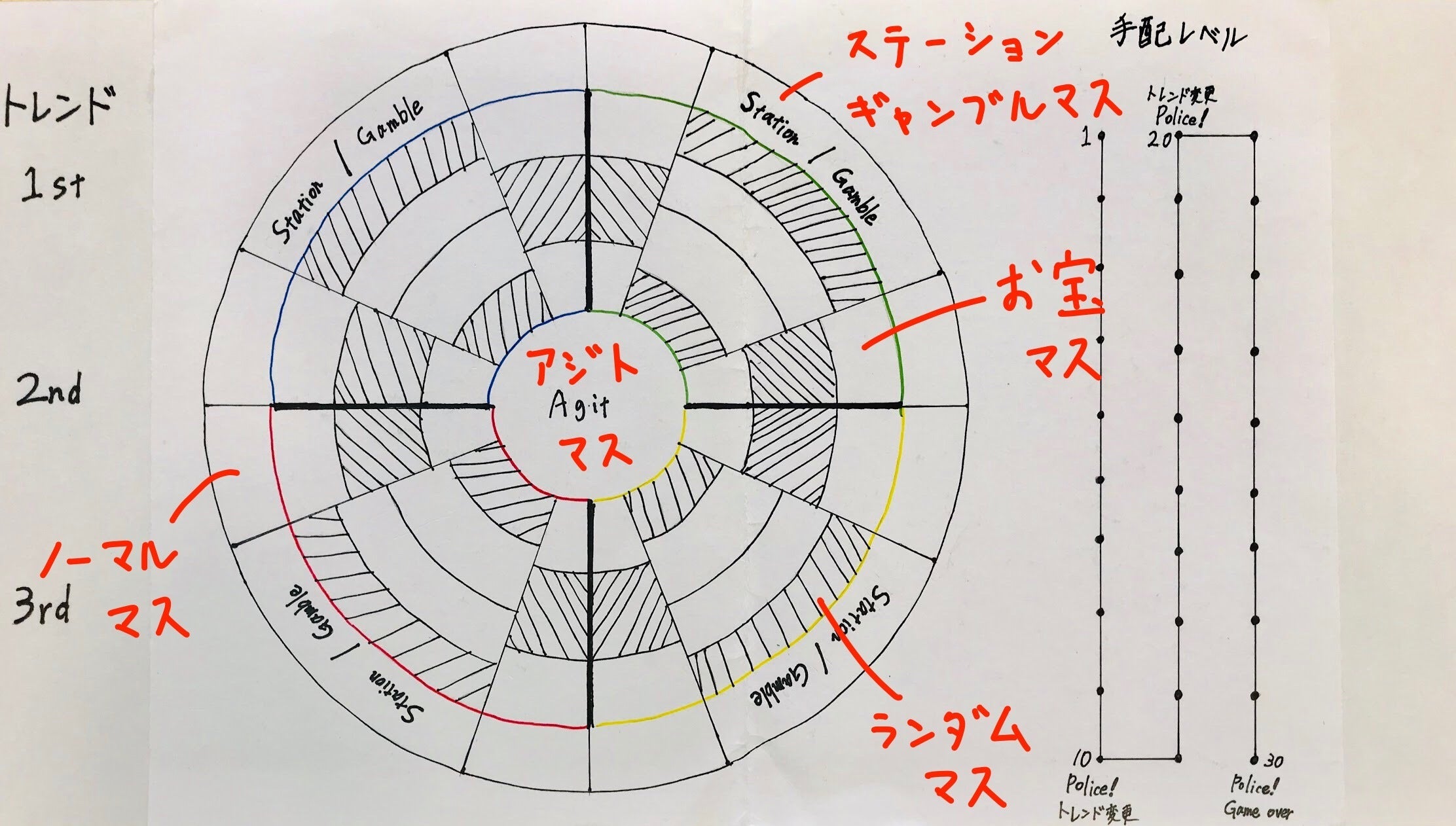 アジトマス...これはボード中心にあるスタート&ゴール地点となるマスです。警察から隠れることができます。