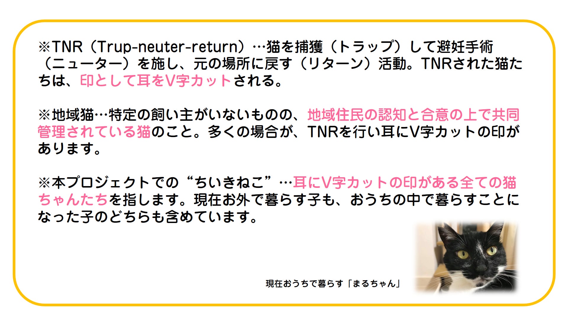 「人間と猫が共存するため」の活動ということを知っている人はもっと少ないと思います。