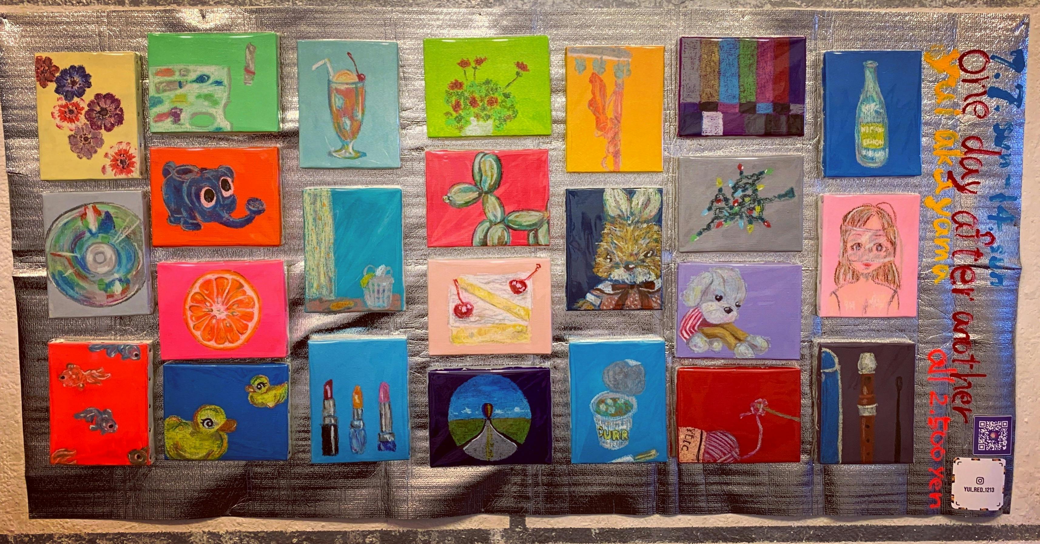 これは先日小さい壁をお借りして展示販売をした様子です。今回のプロジェクトではギャラリーなどで大きな作品なども展示したいと考えております。