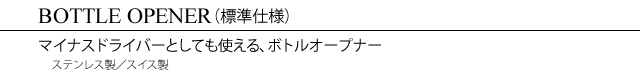 マイナスドライバーとしても使える、栓抜きを標準装備しています。