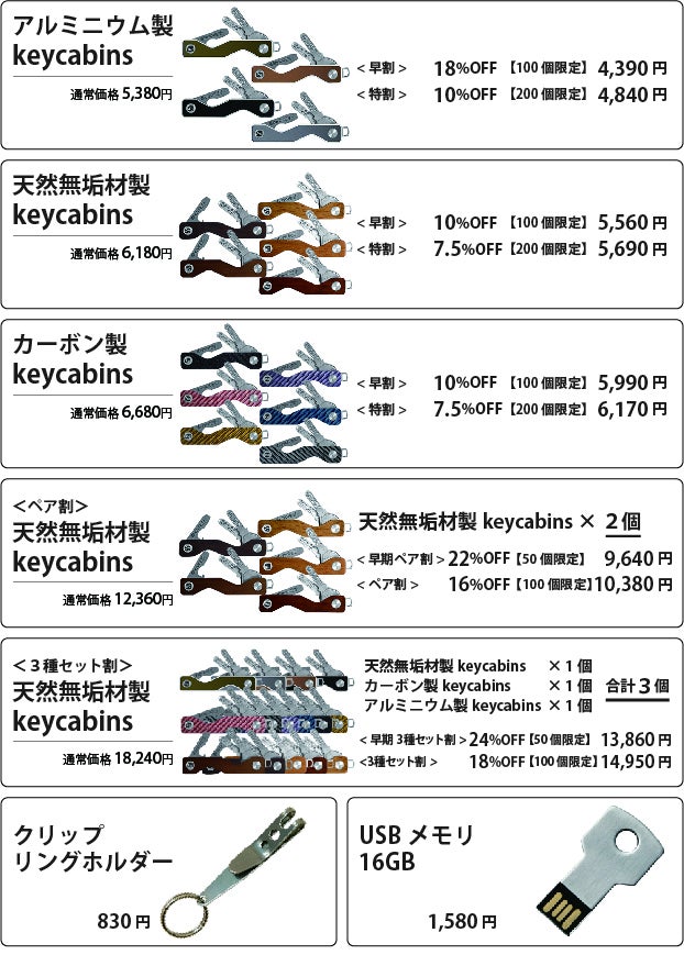 A.USBメモリ、クリップリングホルダーは別売りです。各リターンからご支援ください。ボトルオープナーとリングプレートは標準で付属しています。