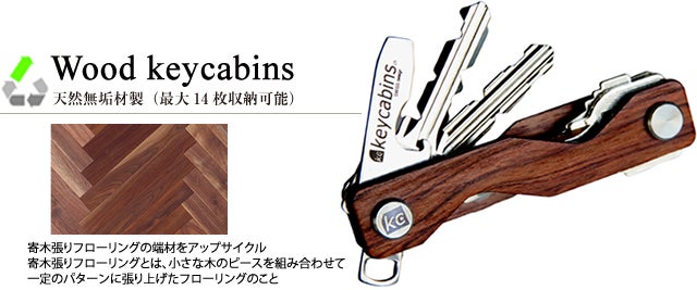 keycabinsでは、フローリングになれなかった、焼却処分されるはずだった無垢材や、環境にやさしくリサイクル可能なアルミニウム素材やカーボン素材から、キーオーガナイザーを製造しています(keycabinsが壊れたり、使わなくなったときは、分解すれば、アルミニウム単体、カーボン単体、ステンレス単体となり、リサイクルが可能です)。