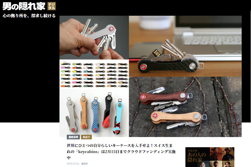 『男の隠れ家 デジタル』様に「keycabins」の記事が掲載されました。