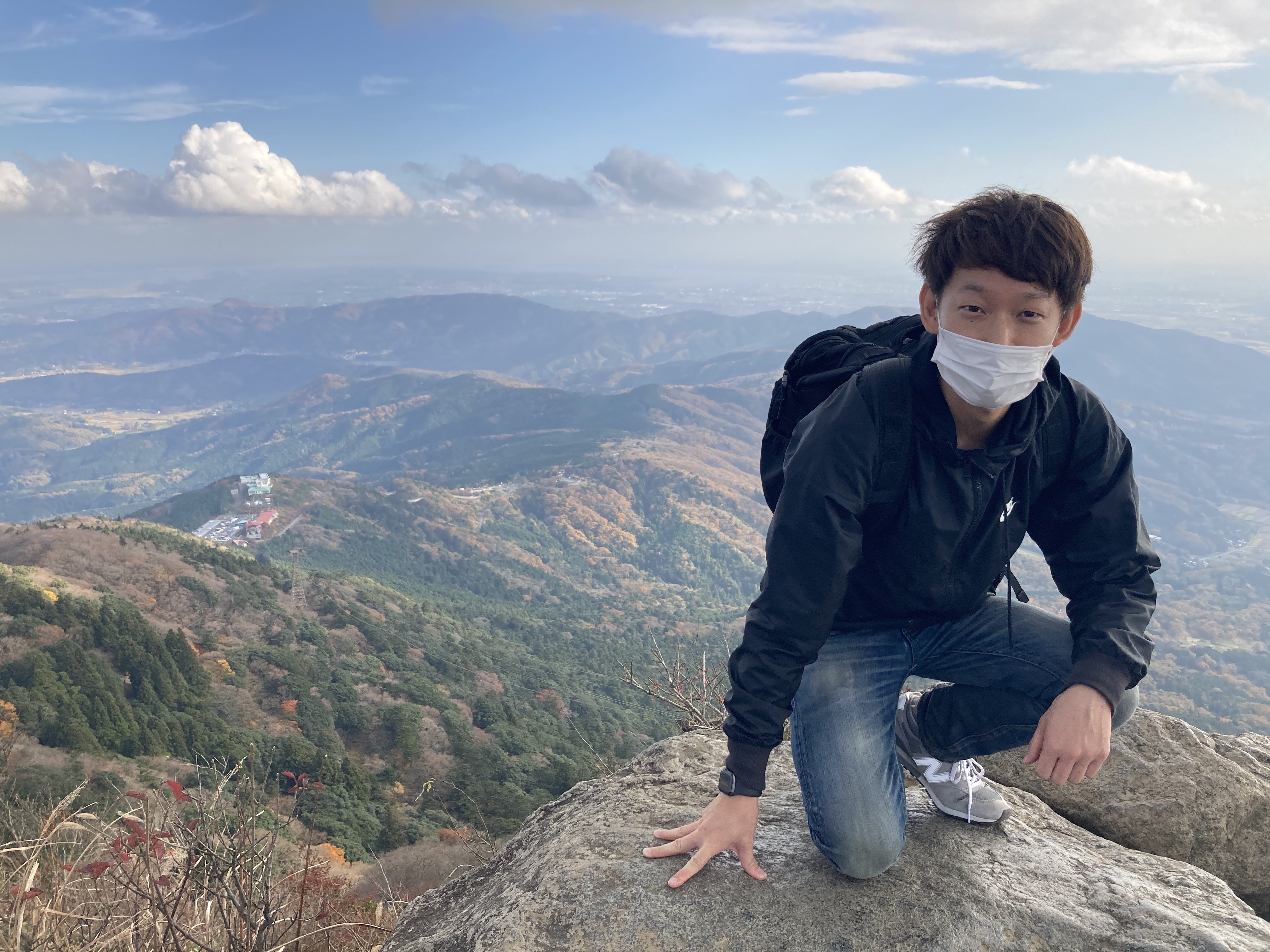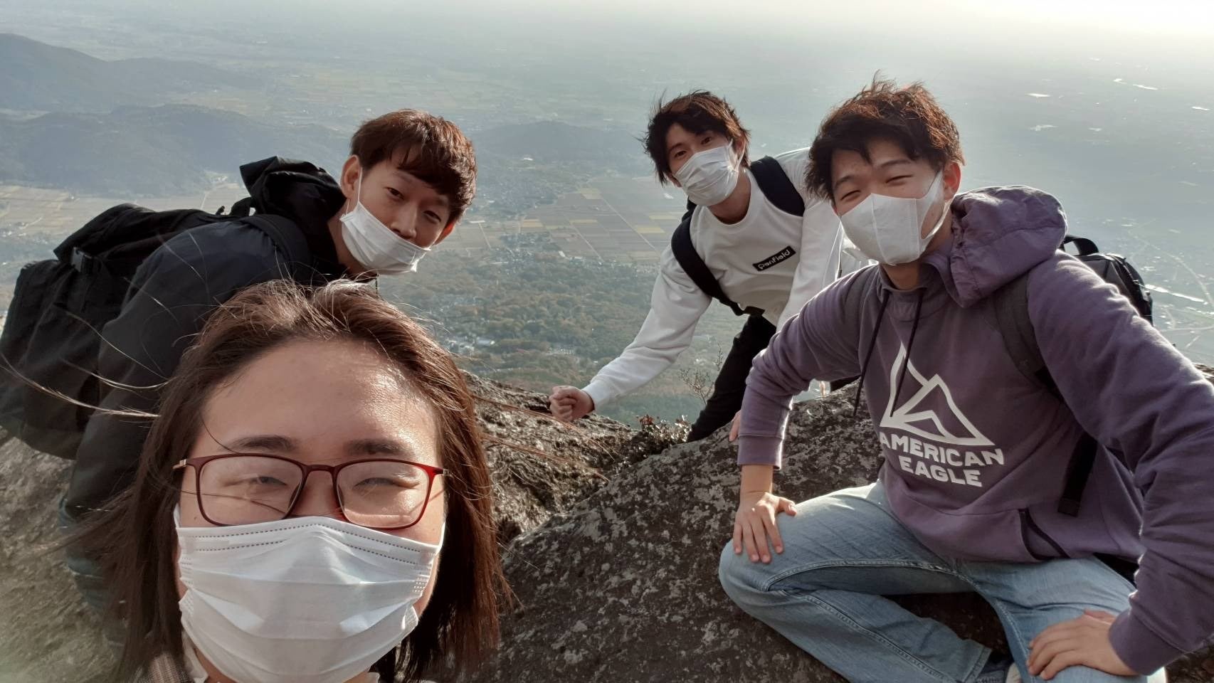 つくば市での実証実験の様子。絶景スポットで旅行者のグエンさんと一枚パチリ