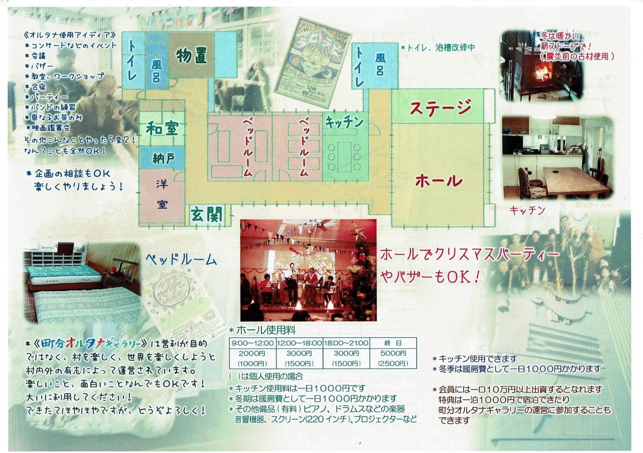 町分オルタナギャラリーではコミュニティの輪を繋げて楽しい事をドンドンやっていこう!と周辺地域で集まった有志の仲間たちの協力で運営しています。現在イベントを企画、運営、コンサート、アトリエやギャラリー、その他何でもアリで運営しています。