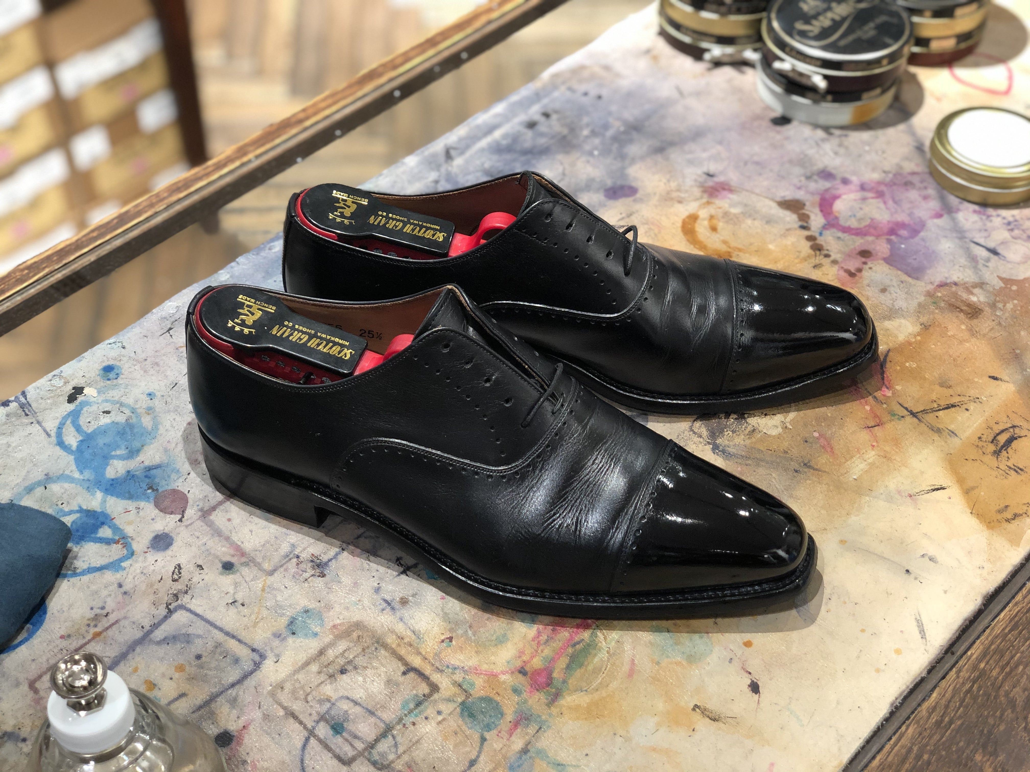 最後はイベントでいらして頂いたお客様の靴を撮らせて頂いたので、こちらにもアップ致します。鏡面仕上げは皆様ご自身で仕上げているので、ご自宅でのケアもバッチリだと思います。