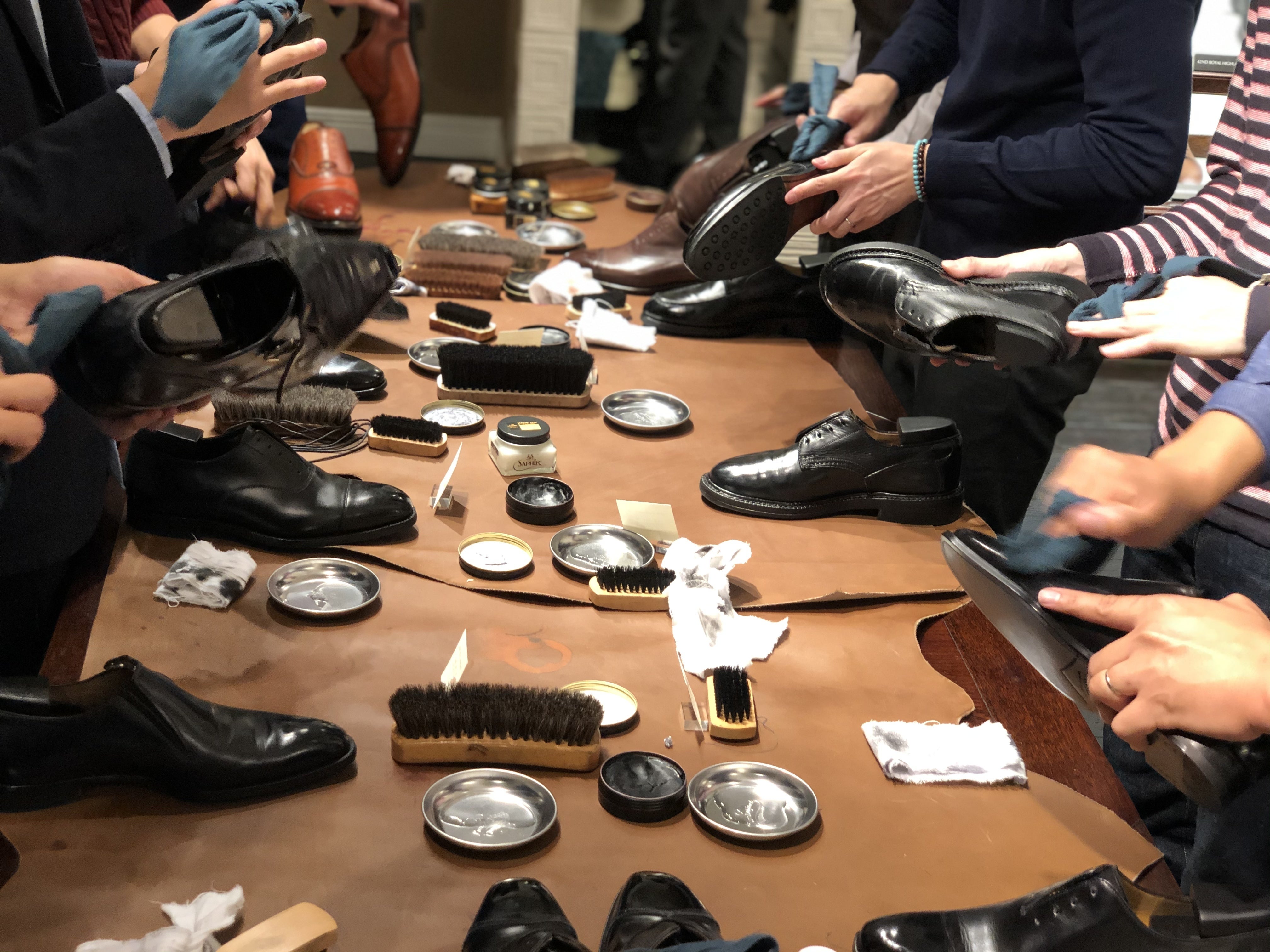 顧客様向け靴磨き会とワークショップの2本建てでした。