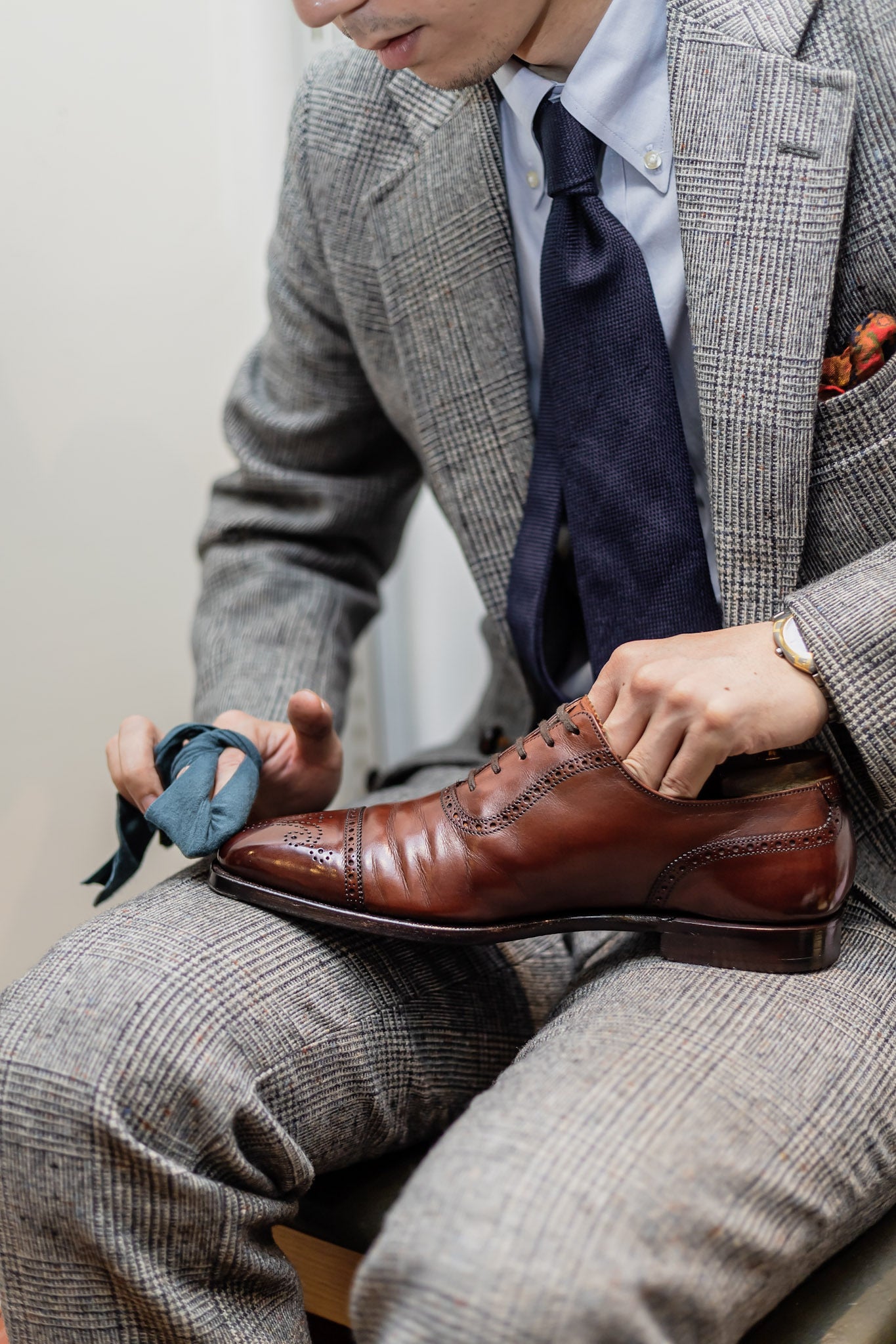 靴修理界のカリスマ、たなぱん先生こと田中さんとご一緒させて頂く靴磨き会でした。