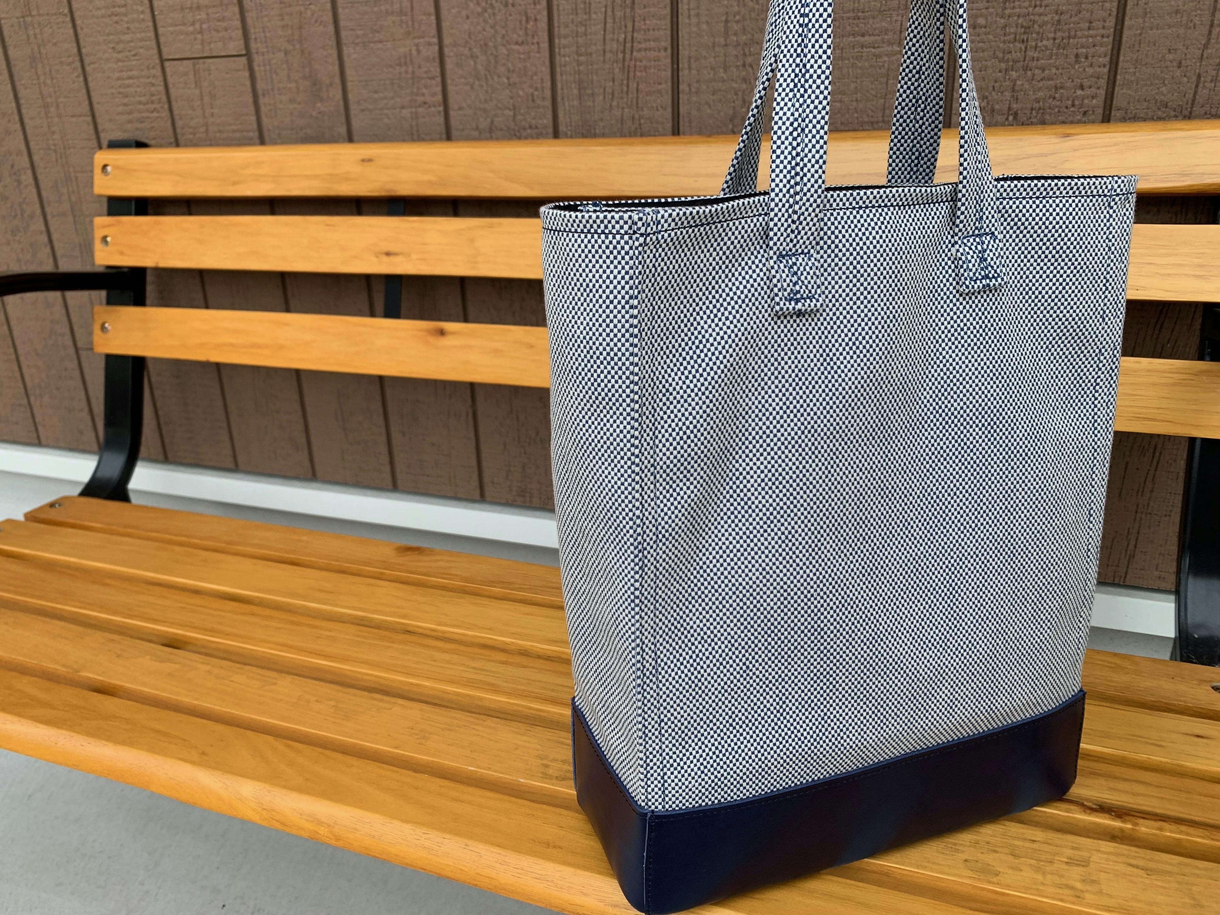 播州織はシャツやハンカチ、ストールなどを作るために用いられることが多く、ほとんどが薄手のものです。今ある播州織の中で厚手とされている生地を探し、PAGOTの商品であるマガジントートを製作してみました。