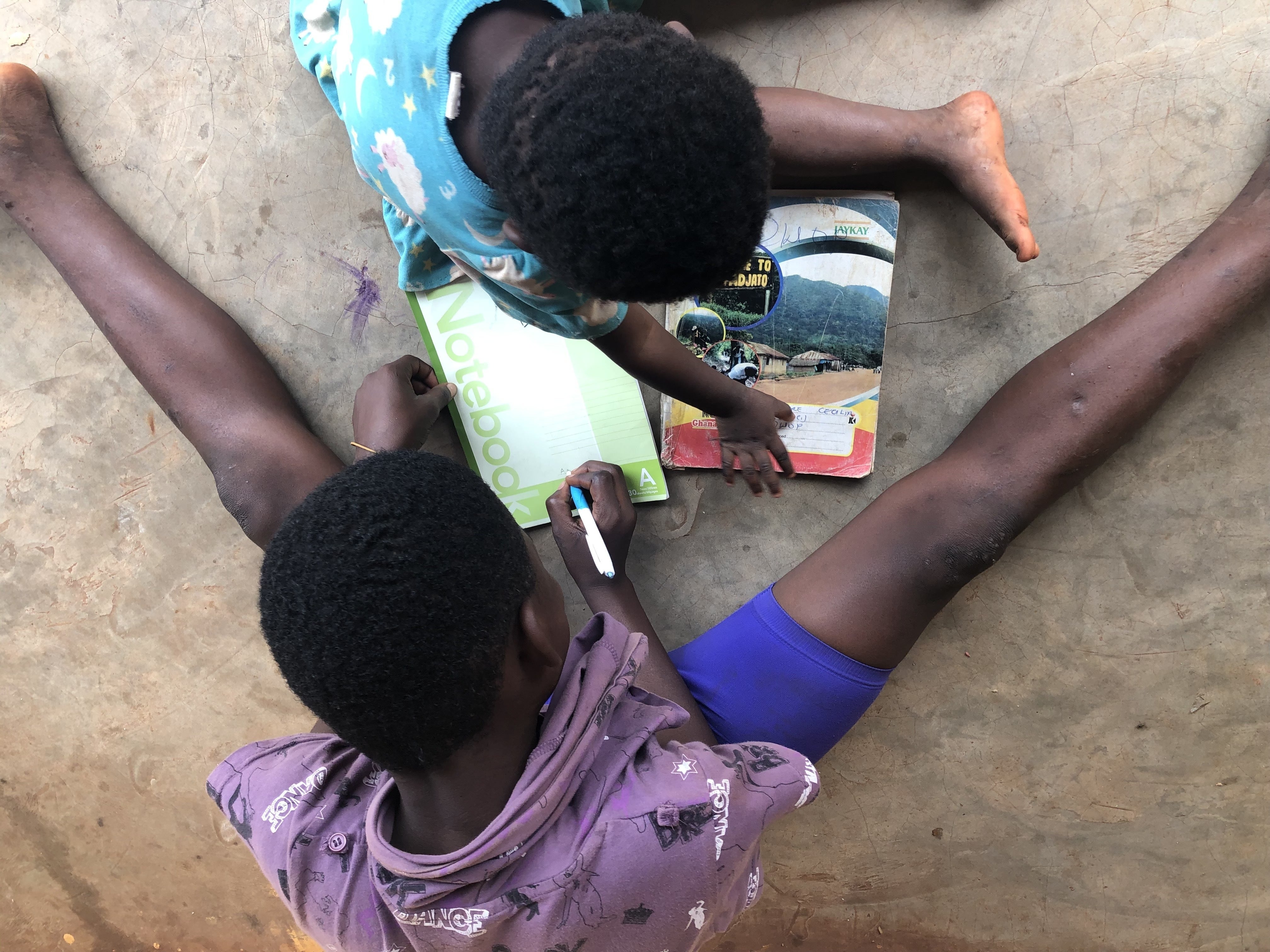ノートとペンを渡したら、英語の勉強を始めた子供たち。勉強することは大好きなんです。