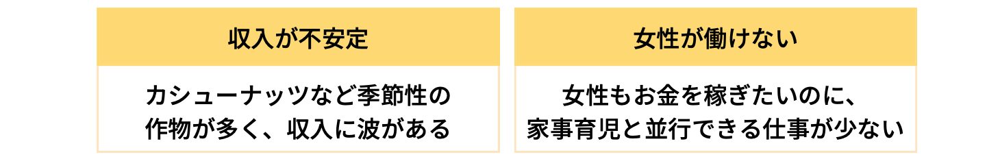 とはいえ、収入が増えることは大事ですが、それだけではまだ不十分です。農家の男性は、せっかく稼いだ僅かなお金を酒や麻薬、ギャンブルに使ってしまうことがよくあります。