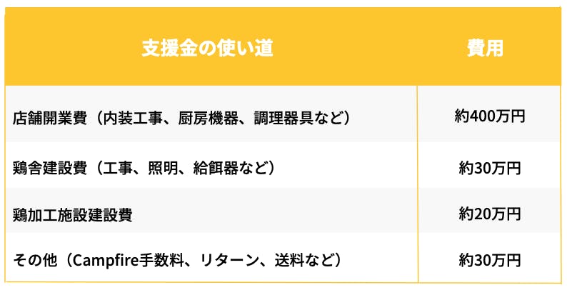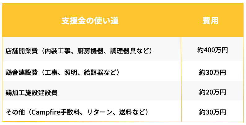 頂いたご支援をなるべく多く「からあげ×養鶏」の仕組み作りに使いたいと思い、リターンに支援型のコースも多く入れさせていただきました。Campfireルール上、同じ内容のリターンを異なる価格設定にできないため、A~Eコースで各リターン内容を少しずつ変えさていただきました。(分かりづらいので下記にまとめました。詳細は各リターン欄をご覧ください。)