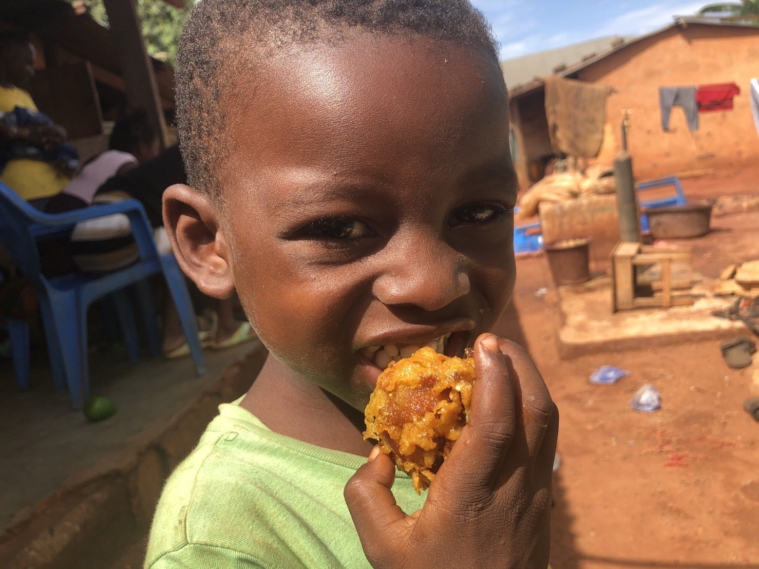 ガーナの小さな村で、現地の方と一緒にからあげを作って、村中に配り歩いたりもしました。