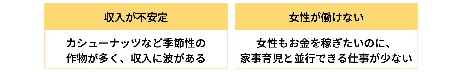 これを支えに大家族を養っています。どうしても安い主食に偏った食生活になってしまい、栄養不足を強く感じました。さらに、「勉強道具を購入できない」「体調を崩しても病院に行けない」「将来もずっとここを離れられない」といった悩みを抱えていました。彼らは岐路に立った時に選択肢を持てないんだと知りました。