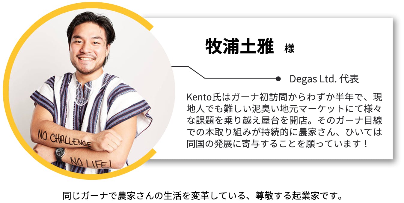 大好きな食の生産者さんの状況をどうにか変えたい。アフリカでの小規模農家さんの所得向上に向けた取り組みは必須だと思い、その第一歩をガーナから始めたいと考えるようになりました。