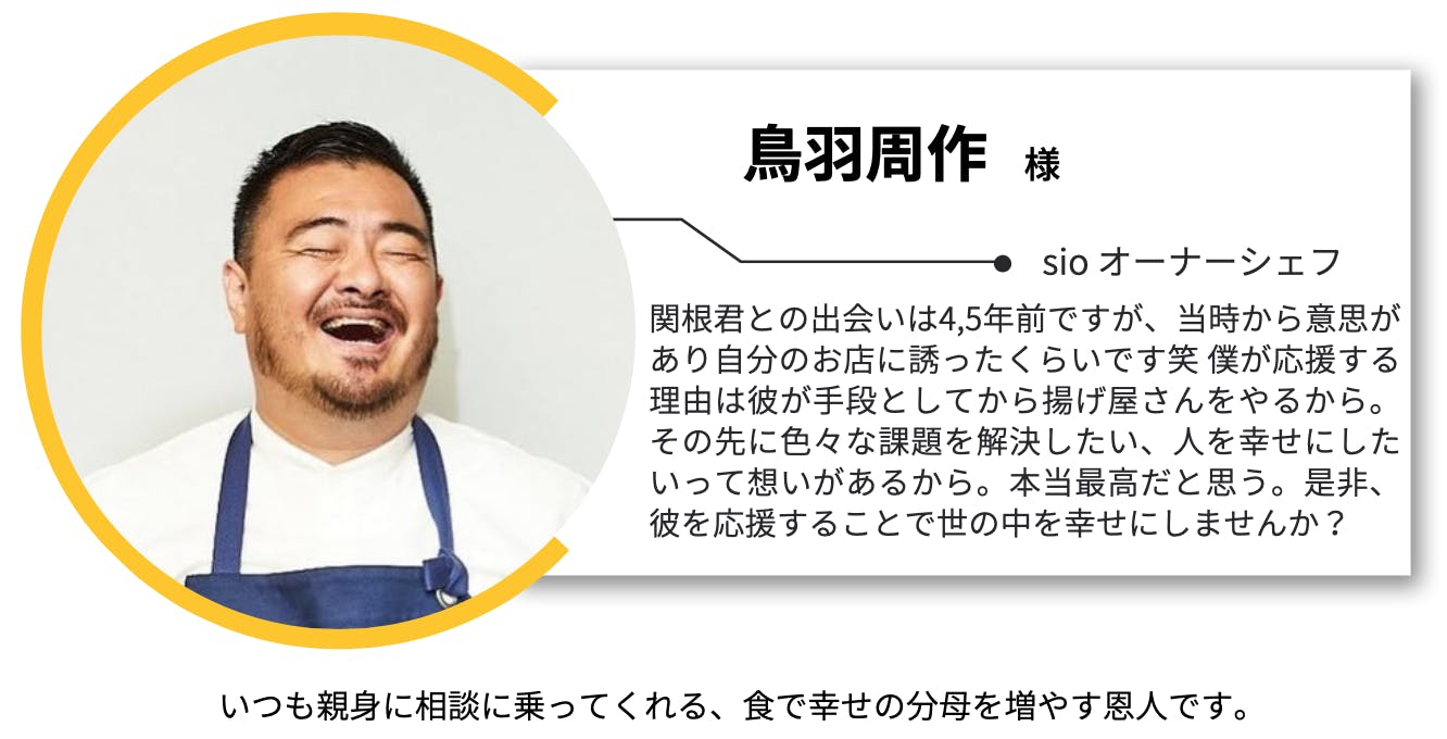 なにより、僕はからあげが大好きです。大人も子供も、食通も関係なく、世界共通でおいしいを共有できる素晴らしい料理だと思っています。そんな大好きなからあげで「おいしい」を増やしていきたいと思いました。