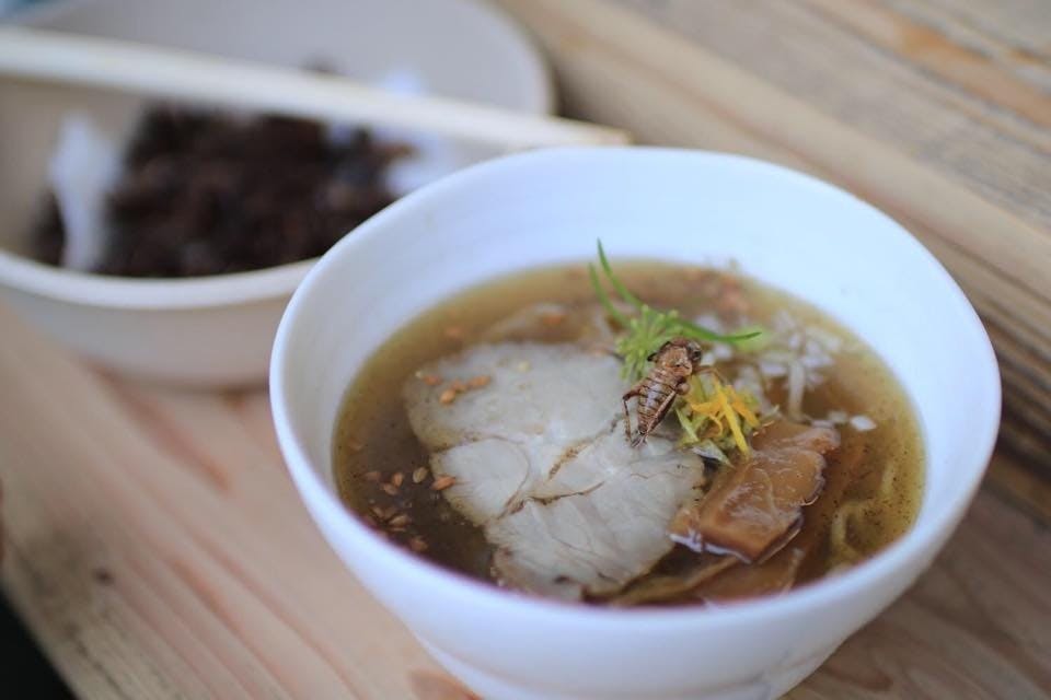 今回は、コオロギ出汁100%のストレートスープに、新しく開発したコオロギ油をあわせた新作に挑戦。