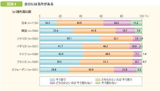 内閣府が行った公的調査からも、日本の子どもたちは諸外国に比べ、圧倒的に自分に対する自信が不足しているのが感じられます。