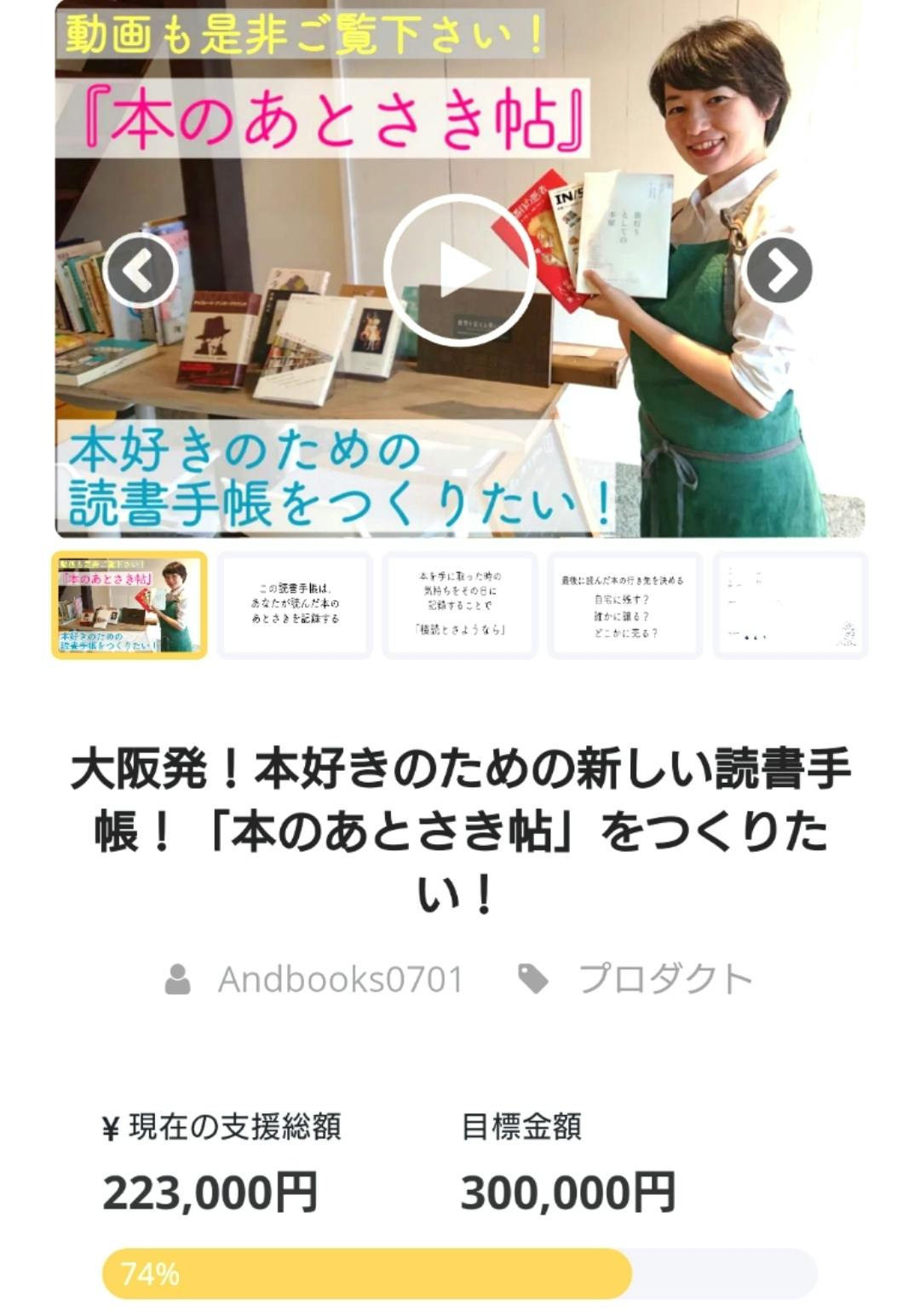 ここ数日、TwitterやInstagram、Facebookでシェアのご協力をしてくださった方、このプロジェクトを知ってご支援してくださった方のお陰で、74%まで支援が増えました。