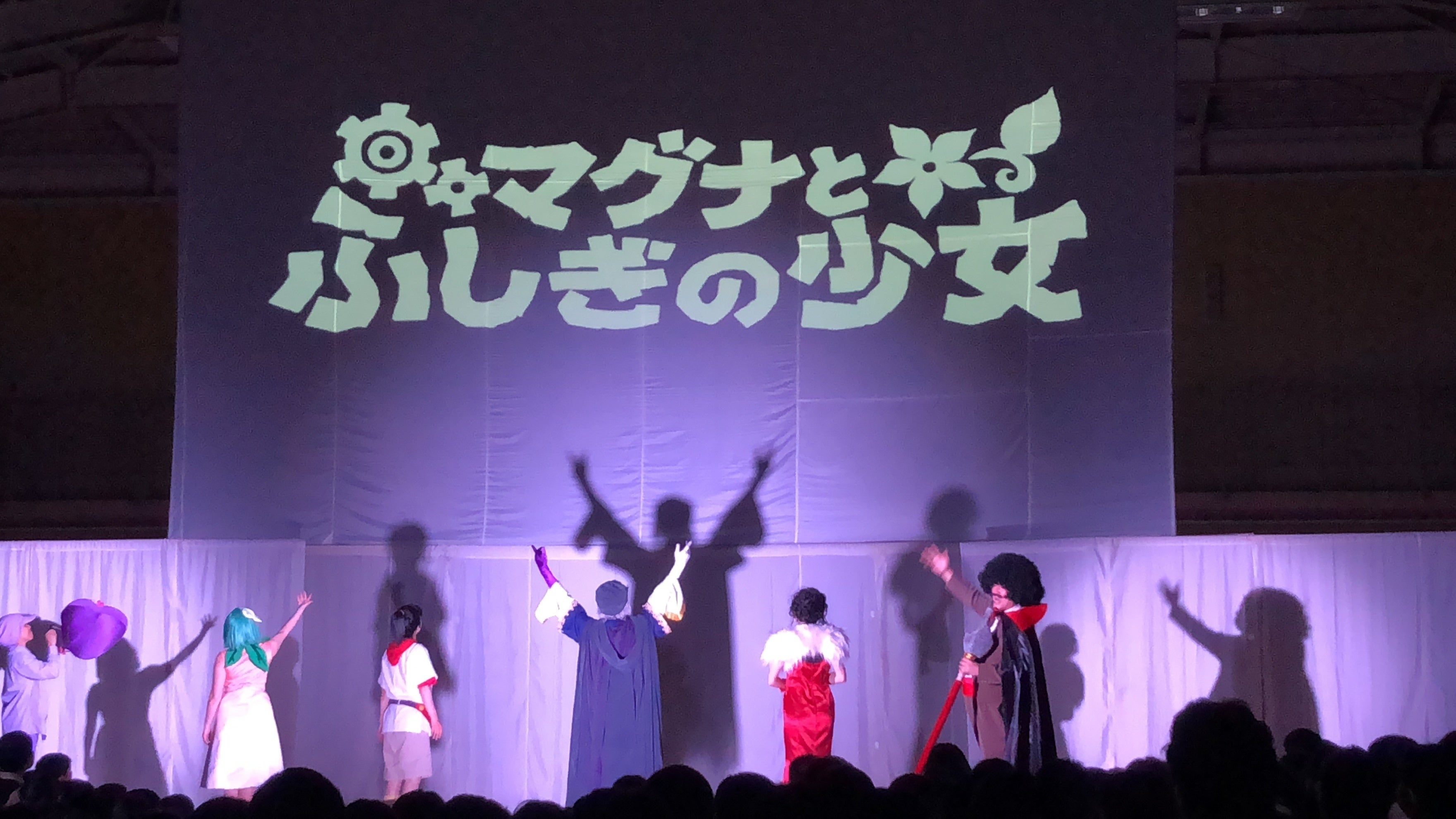 一般公演ではスマホアプリを使うため演出が異なるのですが、ミントとディープパープルが戦うシーンです。プロジェクションマッピングが格好いいんですよ!