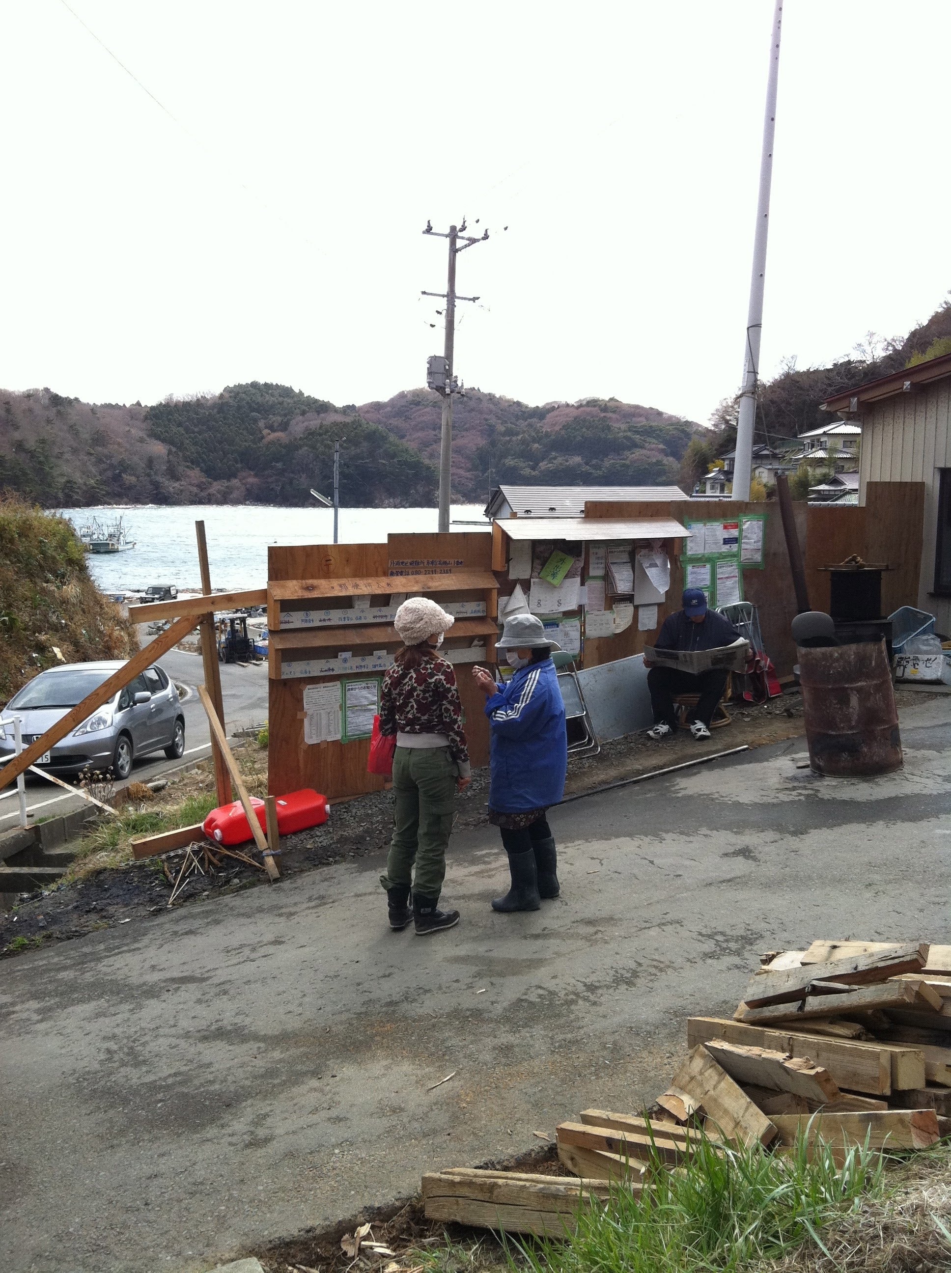 時折、私たちが東北弁に全然ついていけず、きょとーんとしてる私達を見たおじちゃん、おばちゃん達が大笑いして、標準語の通訳を入れてくれるという場面も多々あって、皆で大笑い。このなつかしい感覚どこかで経験したことある、、、と思ったらお正月に親戚一同が集まる場に遊びに来た孫の気分だと気づきました。すっかり避難所であることを忘れていた私に、おじちゃんが「もうせっかくだから、風呂入ってけ。」と(笑)。